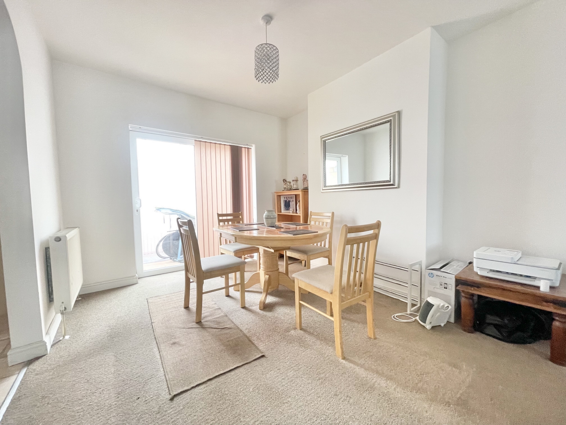 DINING ROOM: 3.6m x 3.2m (11'10" x 10'6"), Double glazed sliding door to the rear, radiator, opening to..