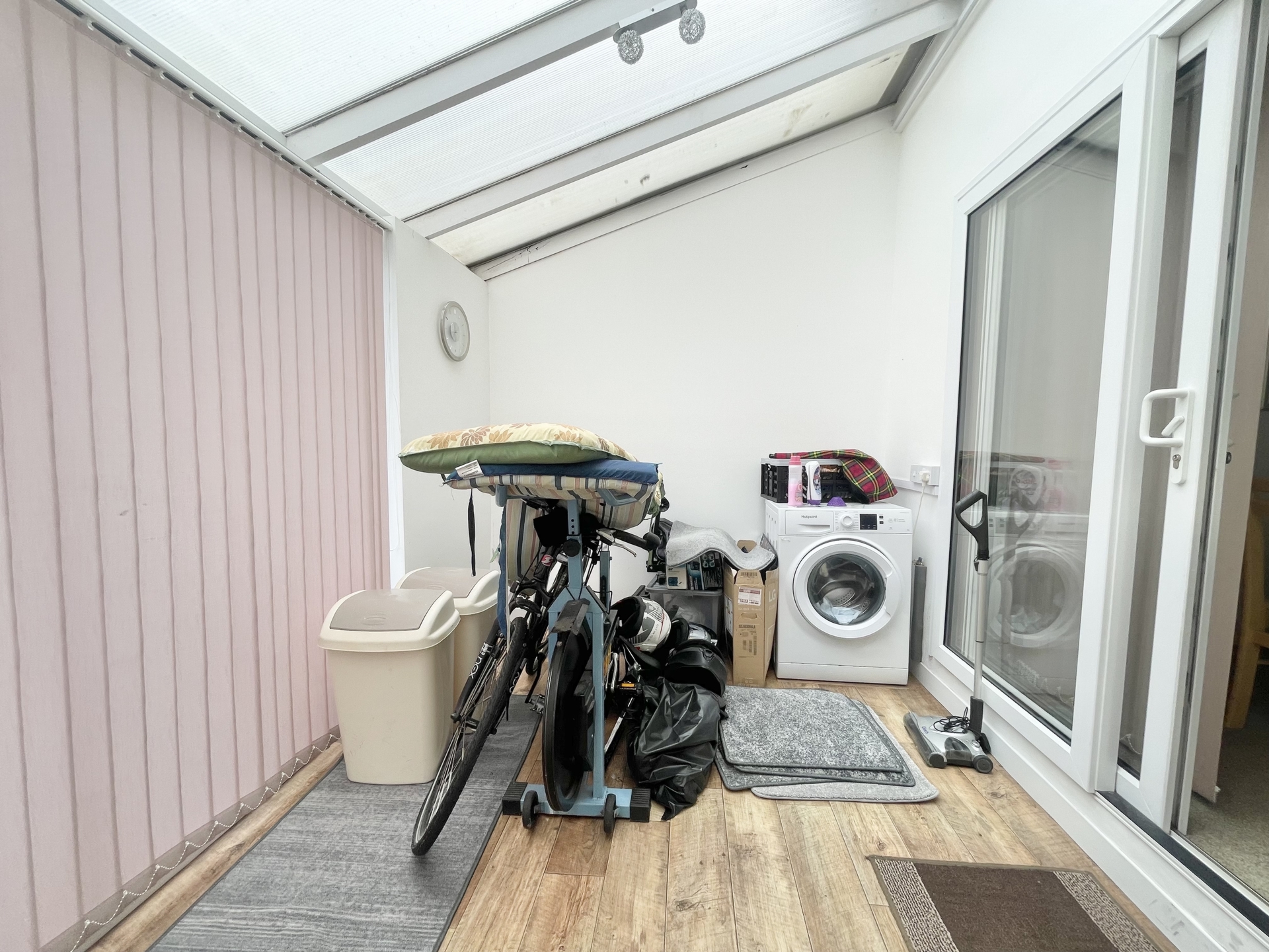 CONSERVATORY: 5.5m x 2.4m (18'1" x 7'10"), Sliding door to the rear garden, space for tumble dryer, wall mounted boiler, door to..