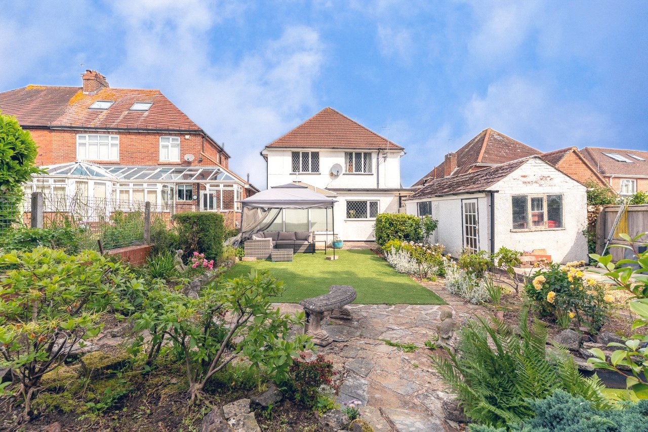 Inside, the home offers a welcoming entrance hall that leads to a bright and spacious sitting room, featuring a bay window and a modern fireplace. A second, larger reception room offers superb versatility, complete with an original fireplace and patio doors opening into a spacious conservatory, creating a fantastic space for play, entertaining, or enjoying views over the rear garden throughout the year.