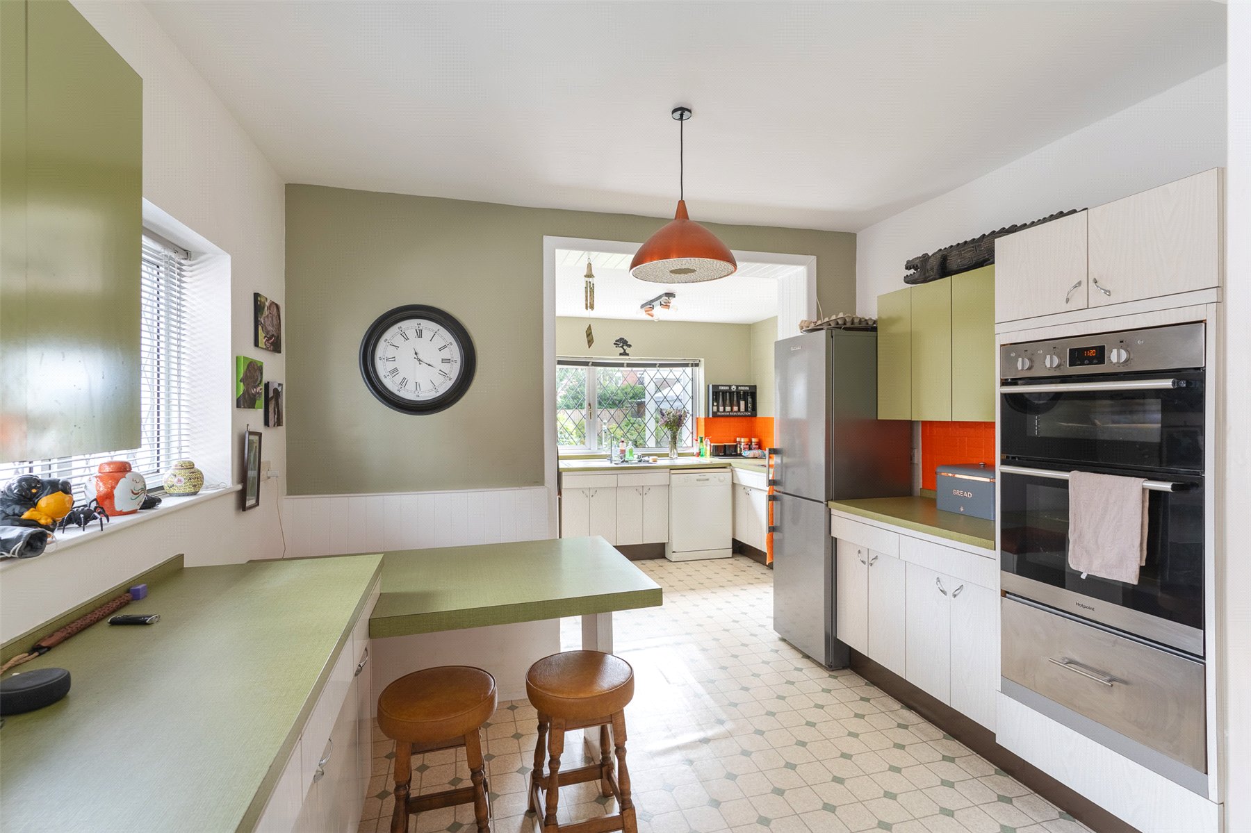 The kitchen has a distinctive retro charm and is exceptionally well maintained. With its generous proportions, there's plenty of room for family dining, cooking, and socialising, making it the true heart of the home. A downstairs WC adds convenience for everyday family living.