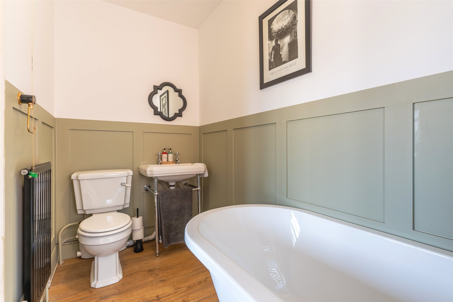 Upstairs, the property offers three double bedrooms and a good-sized single, ideal for children, guests, or a home office. The principal bedroom benefits from a beautifully presented en-suite bathroom with a feature roll-top claw-foot bath, while a modern, separate shower room serves the rest of the household.