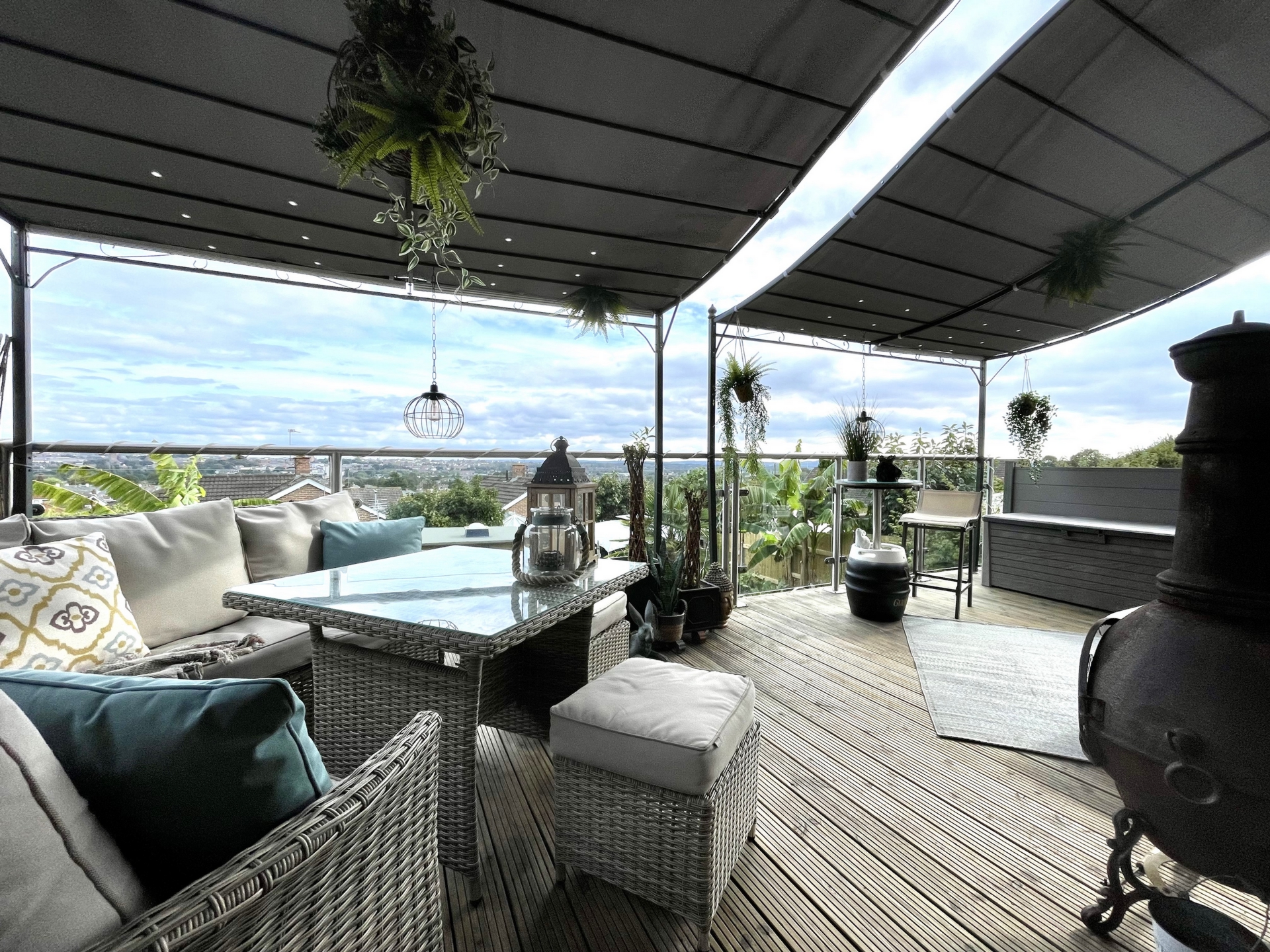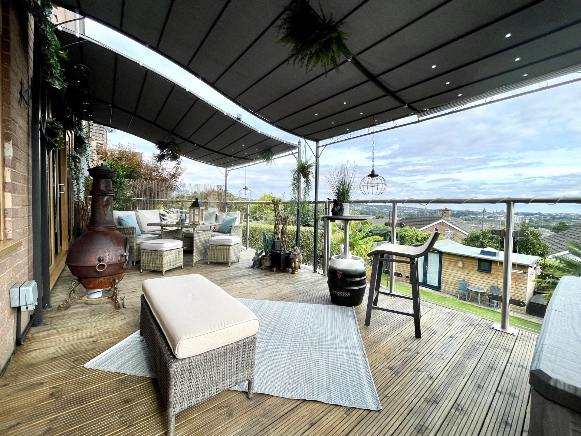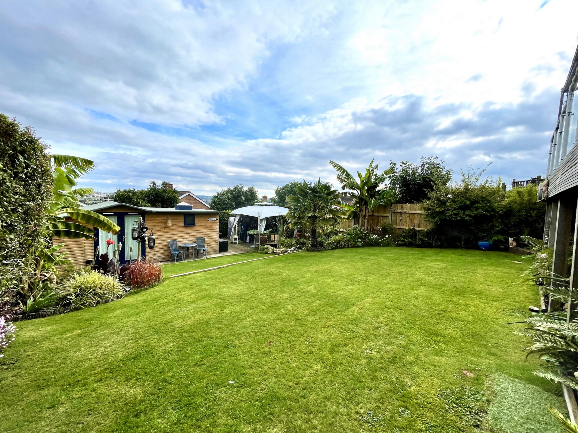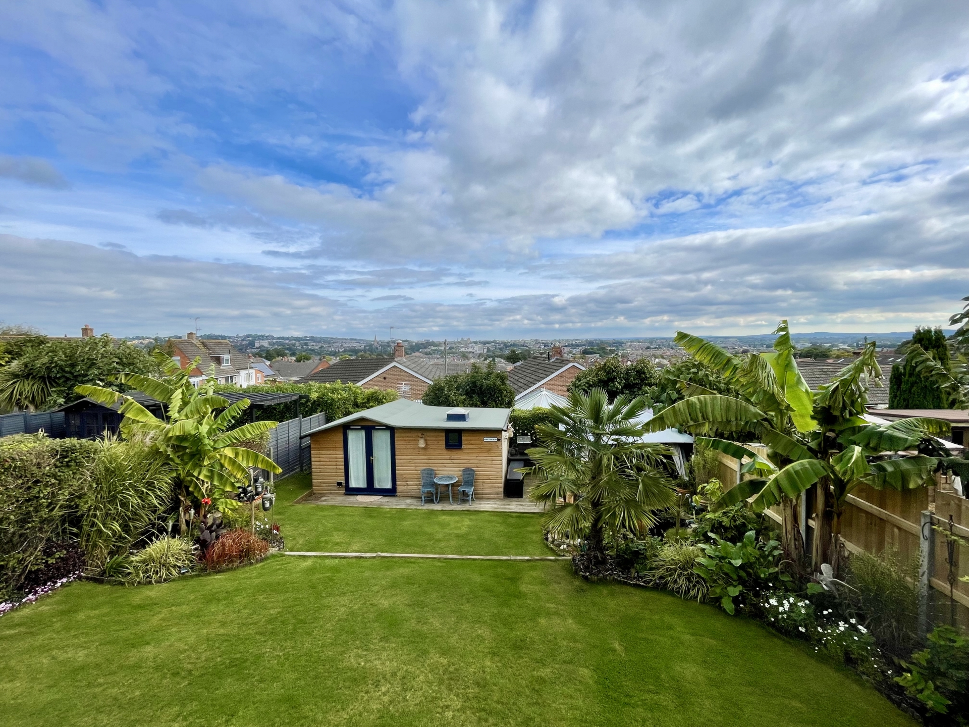 OUTSIDE: To the front of the property is an area designed for off road parking for multiple vehicles with a raised well stocked flowerbed. A good size decked patio leads off of the lounge making the perfect area for alfresco dining and entertaining with far reaching views over parts of the city. Steps leads down to an attractive enclosed garden with well manicured lawn and well stocked boarders with feature pond. To the bottom of the garden is a good size studio with a decked patio creating another fantastic social space. Under the main decked patio is an area designed for storage.