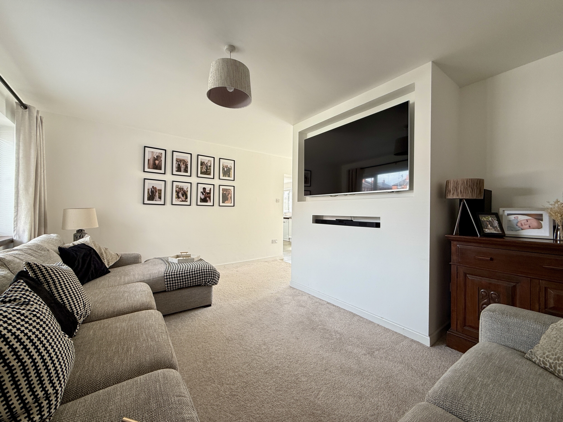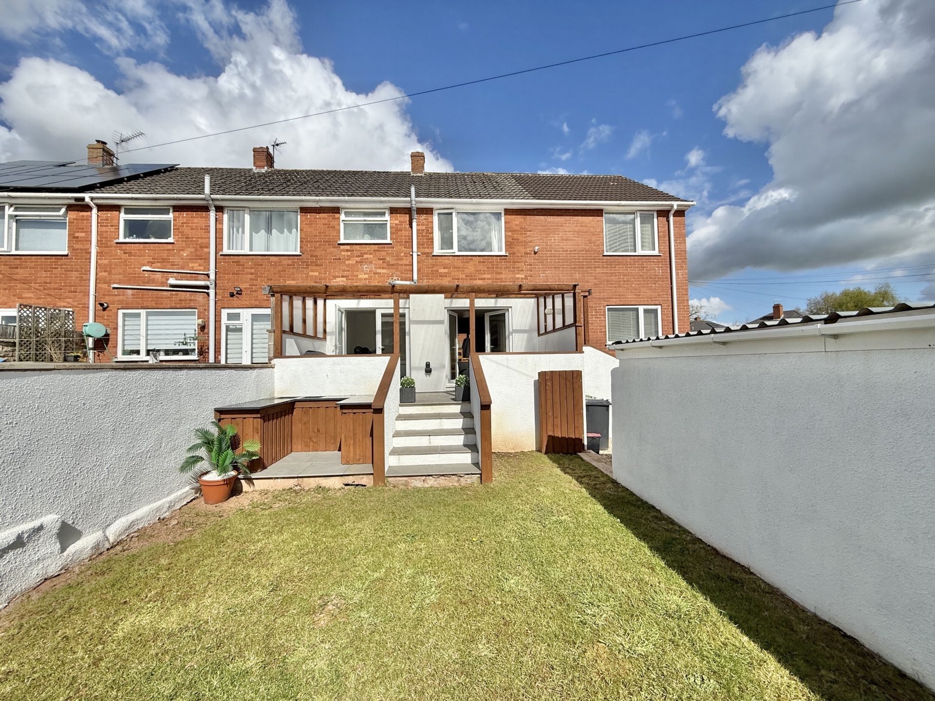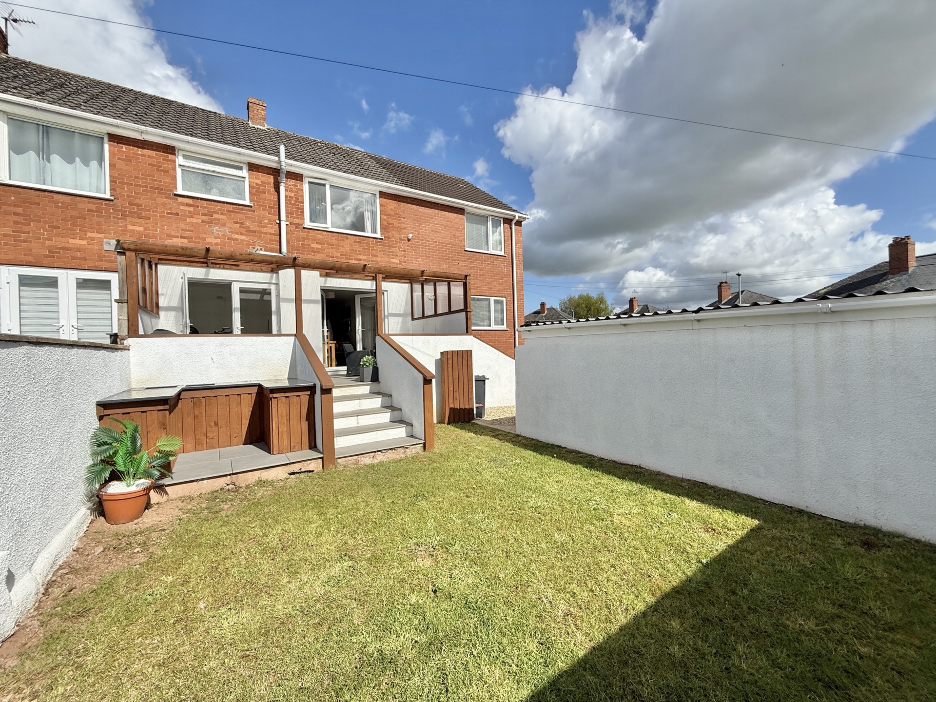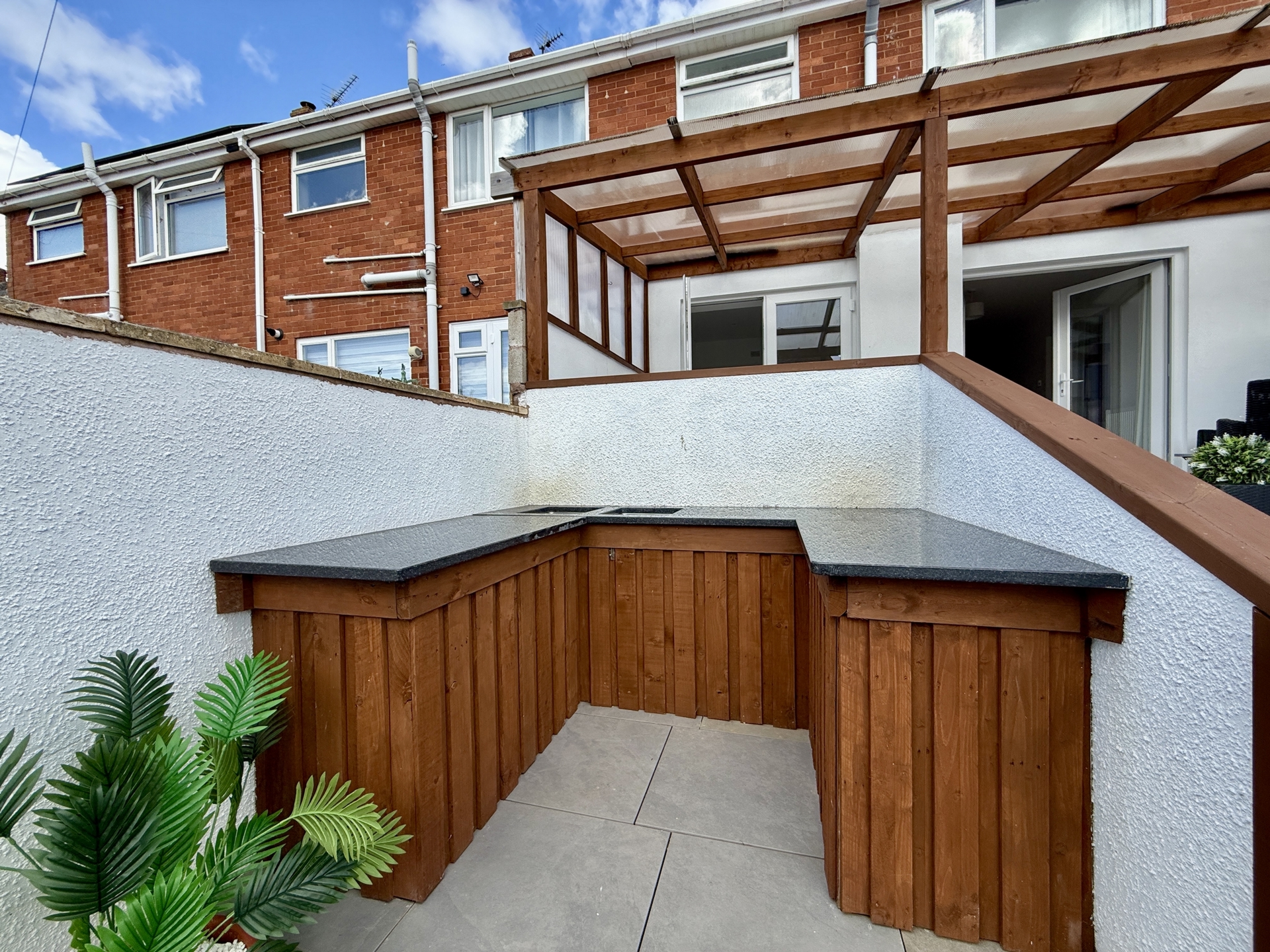 OUTSIDE: Occupying a desirable corner plot the garden features a lawned area to the front with steps leading down to a low maintenance section of stone chippings. This area provides access to the garage and a gate leading through to the rear garden. The rear garden offers a covered seating area, ideal for relaxing or entertaining,# with steps leading down to a further generously sized lawn. In addition, there is a dedicated space designed for outdoor cooking and entertaining creating a perfect setting for social gatherings.