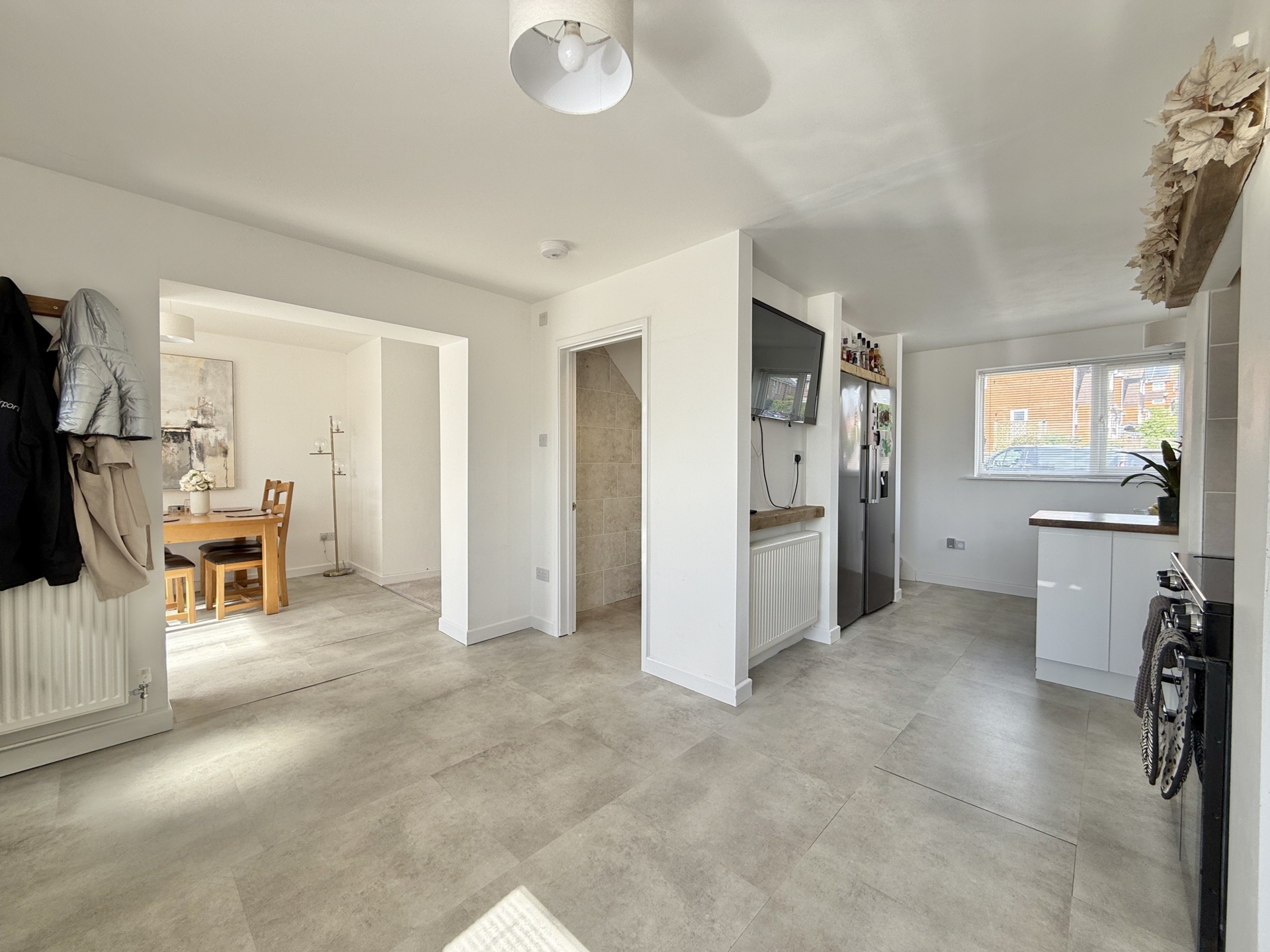 DINING ROOM: 2.9m x 2.7m (9'6" x 8'10"), Double glazed doors to the rear, radiator, open plan to..