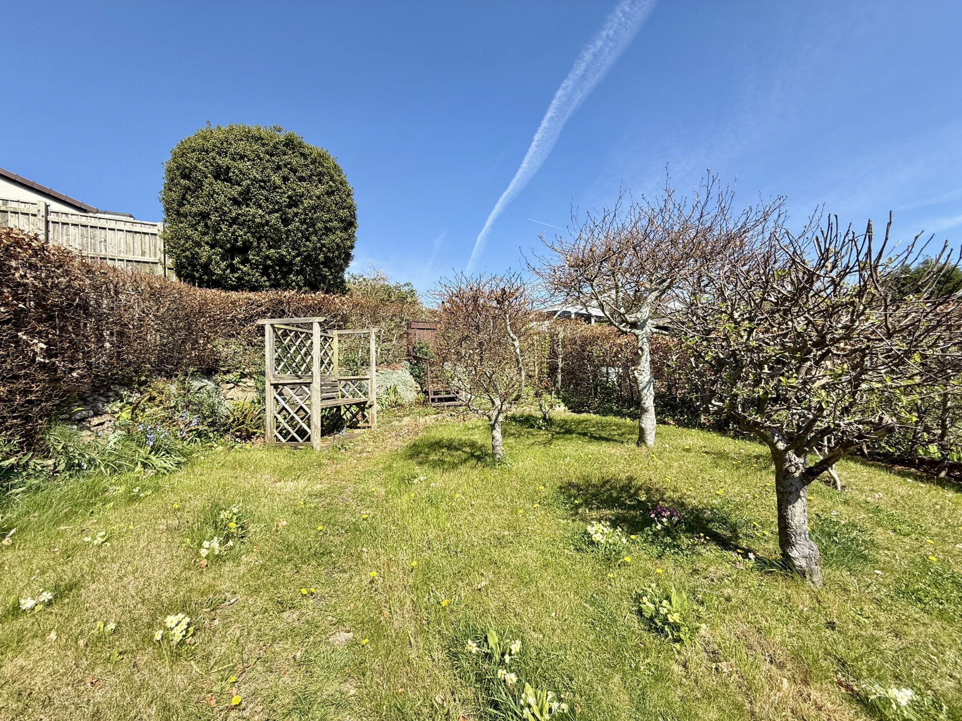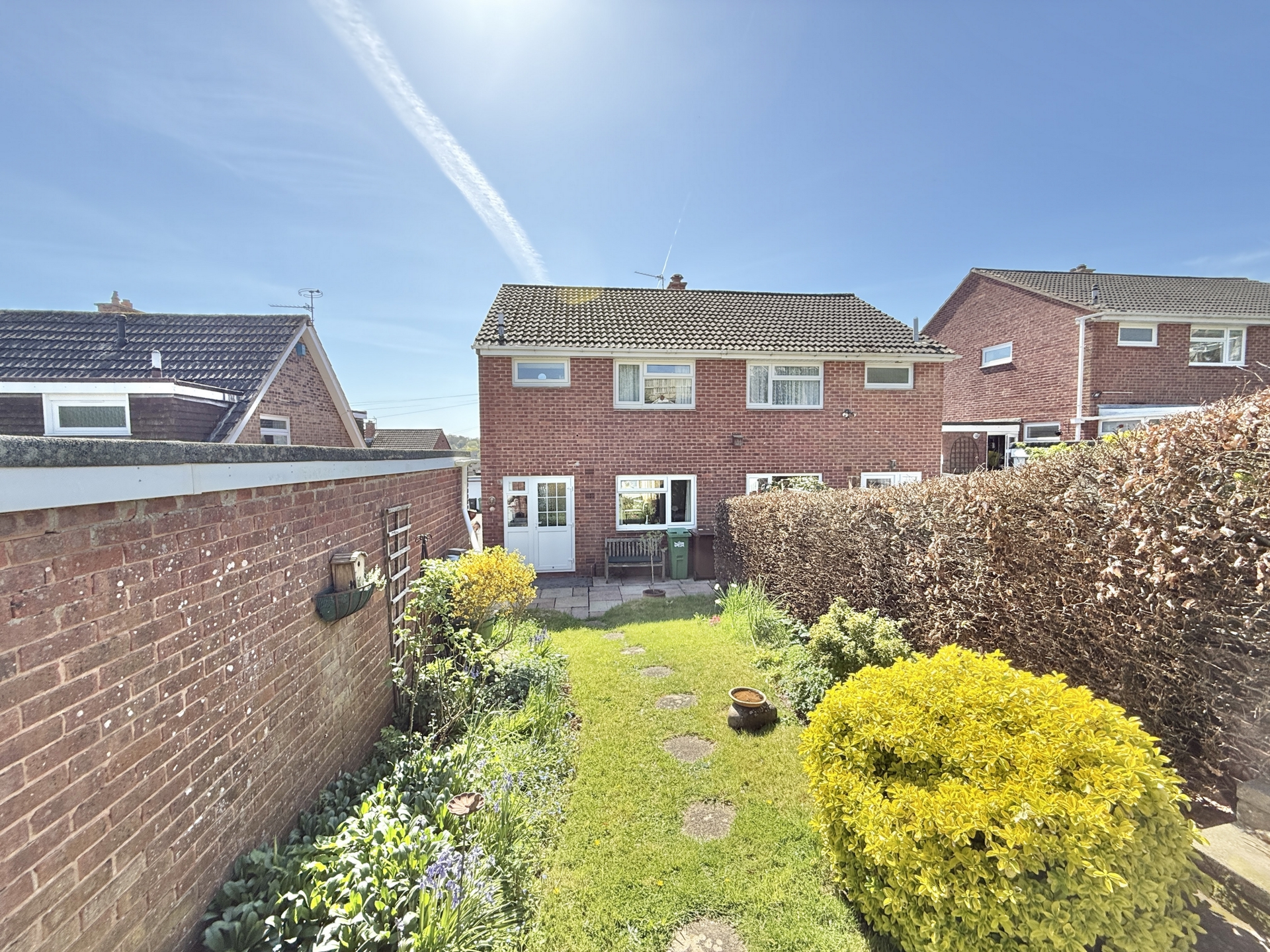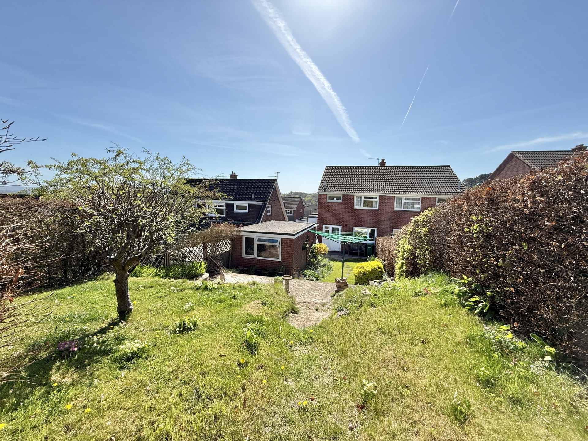 OUTSIDE: To the front of the property is a lawned garden bordered by hedgerow, with a driveway leading to the garage and providing off-road parking.The rear garden is a particular feature of the property, thoughtfully arranged across different levels. A paved patio leads to a lawned area, with steps rising to a further patio and additional steps leading to another section of lawn. The garden is well stocked with mature hedgerow, trees, and shrubs, creating an attractive and established outdoor space.