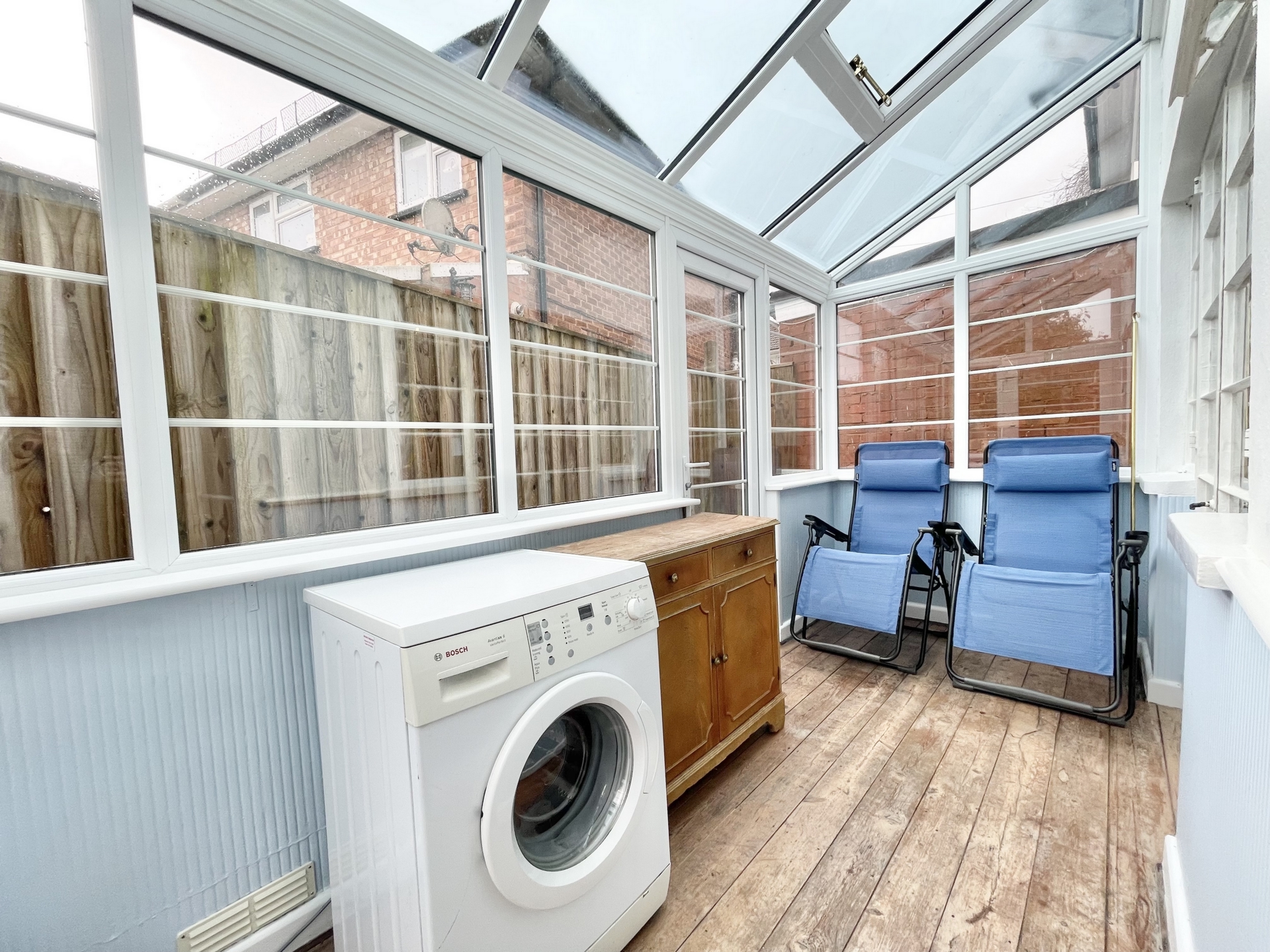 CONSERVATORY: 4.2m x 1.5m (13'9" x 4'11"), Double glazed window to the side and the rear, space for washing machine, door to the rear garden.