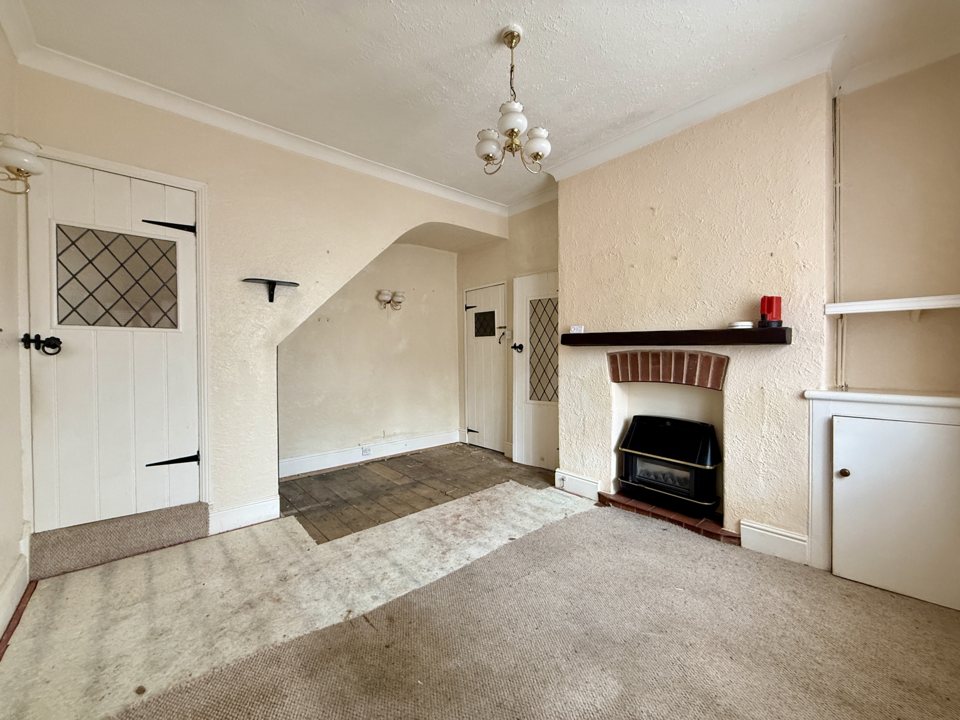 LOUNGE: 4.3m x 3.5m (14'1" x 11'6"), Double glazed window to the front, stairs to first floor landing, built in cupboard.
