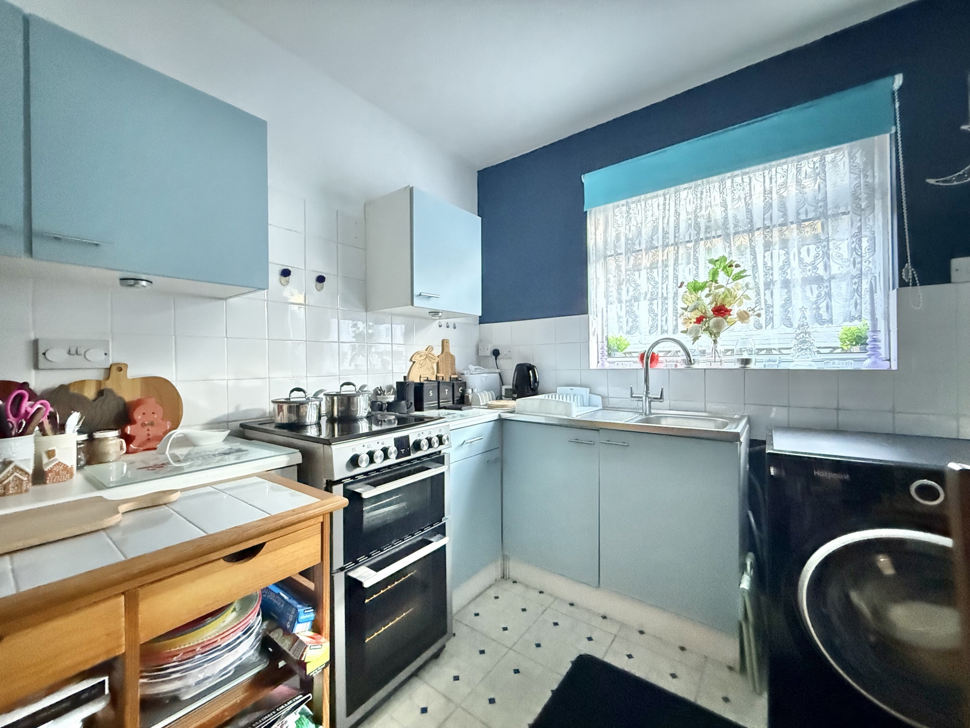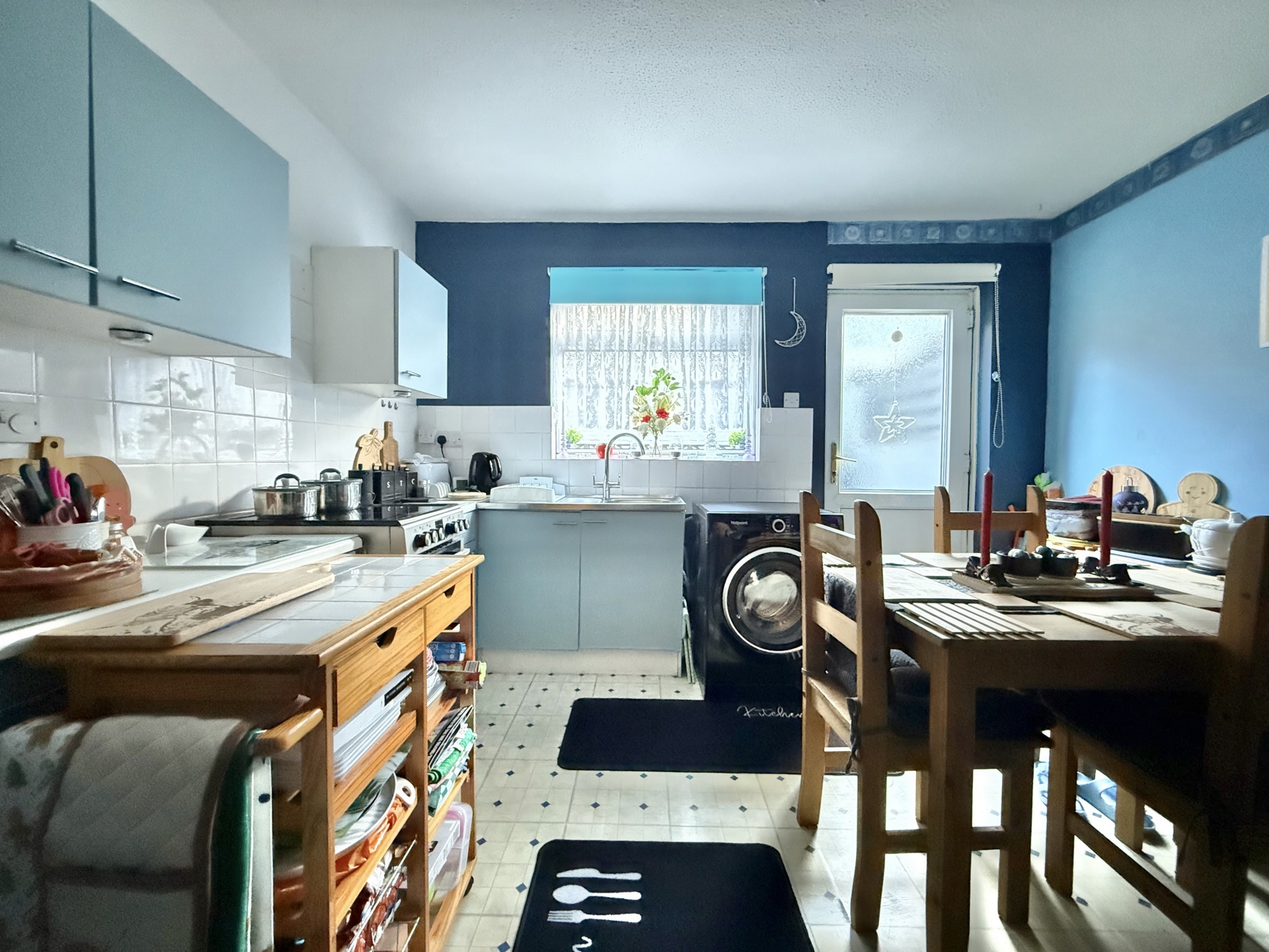KITCHEN/DINER: 3.6m x 3.3m (11'10" x 10'10"), Base cupboards and drawers with worktop over, sink and drainer, wall mounted cupboards, space for cooker, space for washing machine, double glazed windows to the rear, double glazed door to the rear.