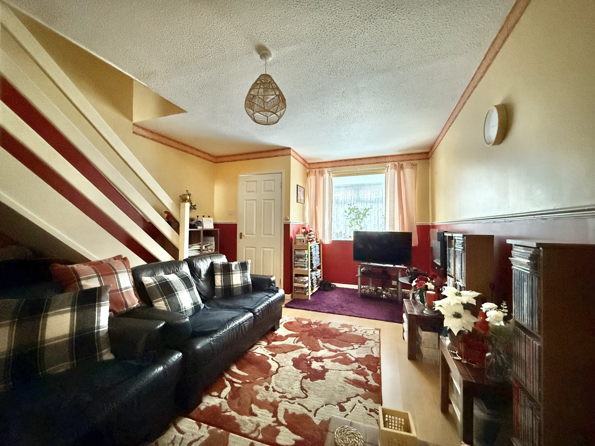 LOUNGE: 5.0m x 3.6m (16'5" x 11'10"), Double glazed window to the front, stairs to first floor landing, electric heater.