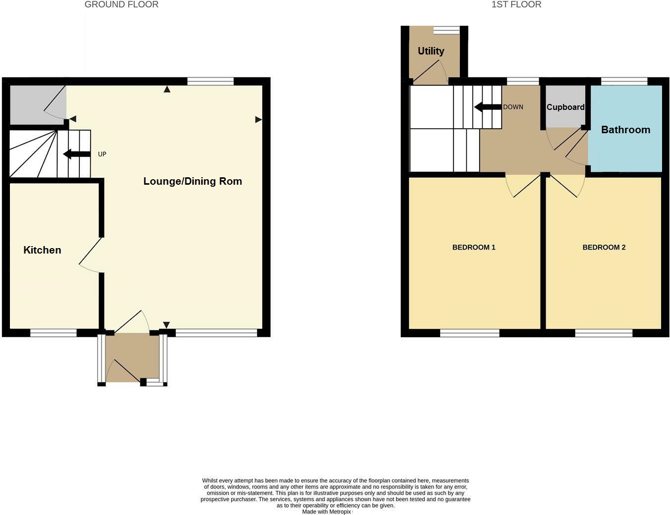 UTILITY: Space for washing machine, space for tumble dryer, worktop with sink, double glazed window to the side and the rear, door to the rear garden.