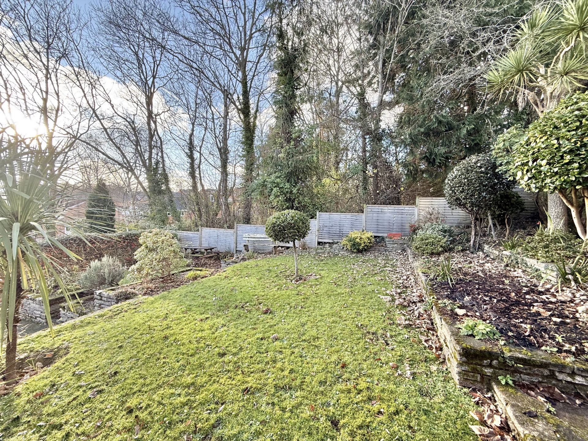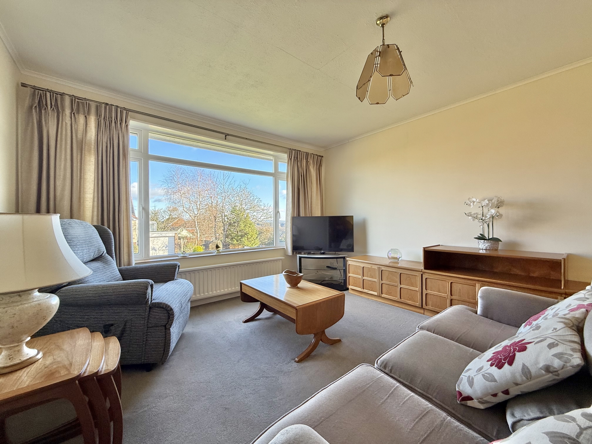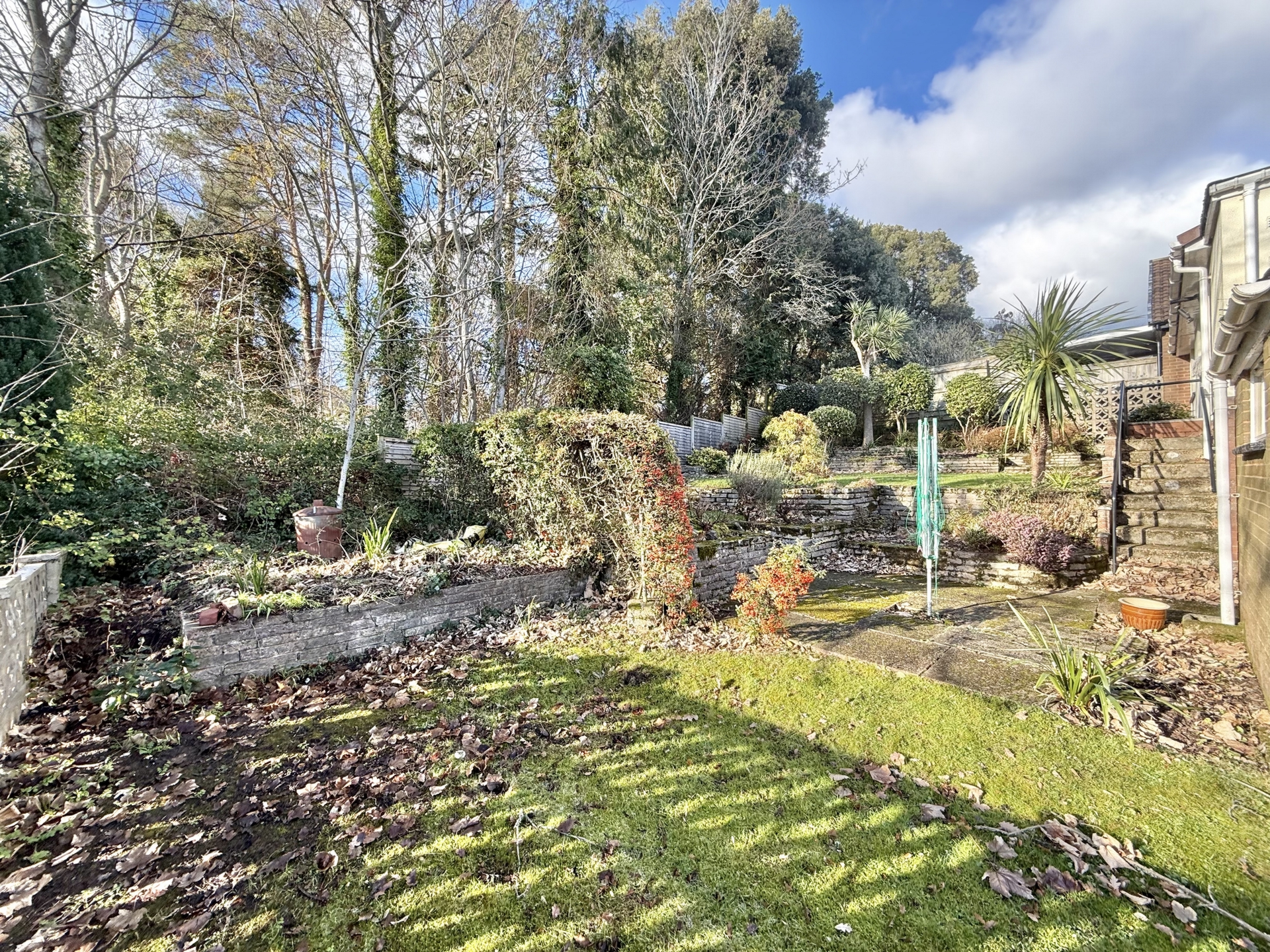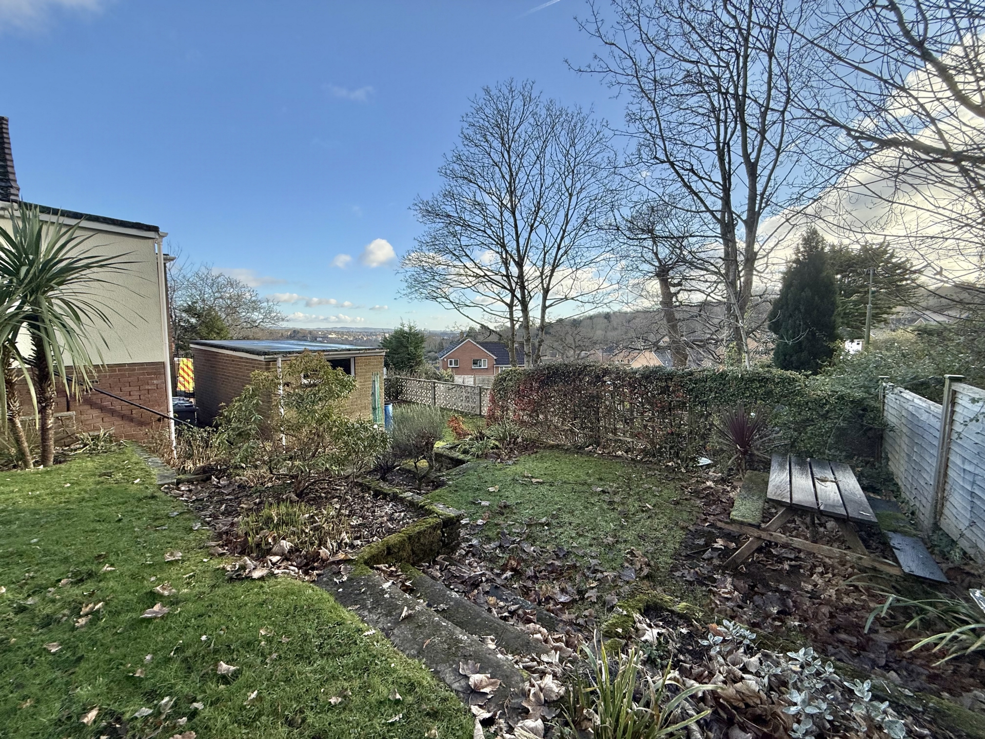 OUTSIDE: To the front of the property is a driveway leading to the garage and steps leading to the front door with good area of grass lawn. The rear garden is a particular feature with tiered sections mainly laid to grass lawn with mature shrubs, plants, trees and a paved patio with views over parts of the city.