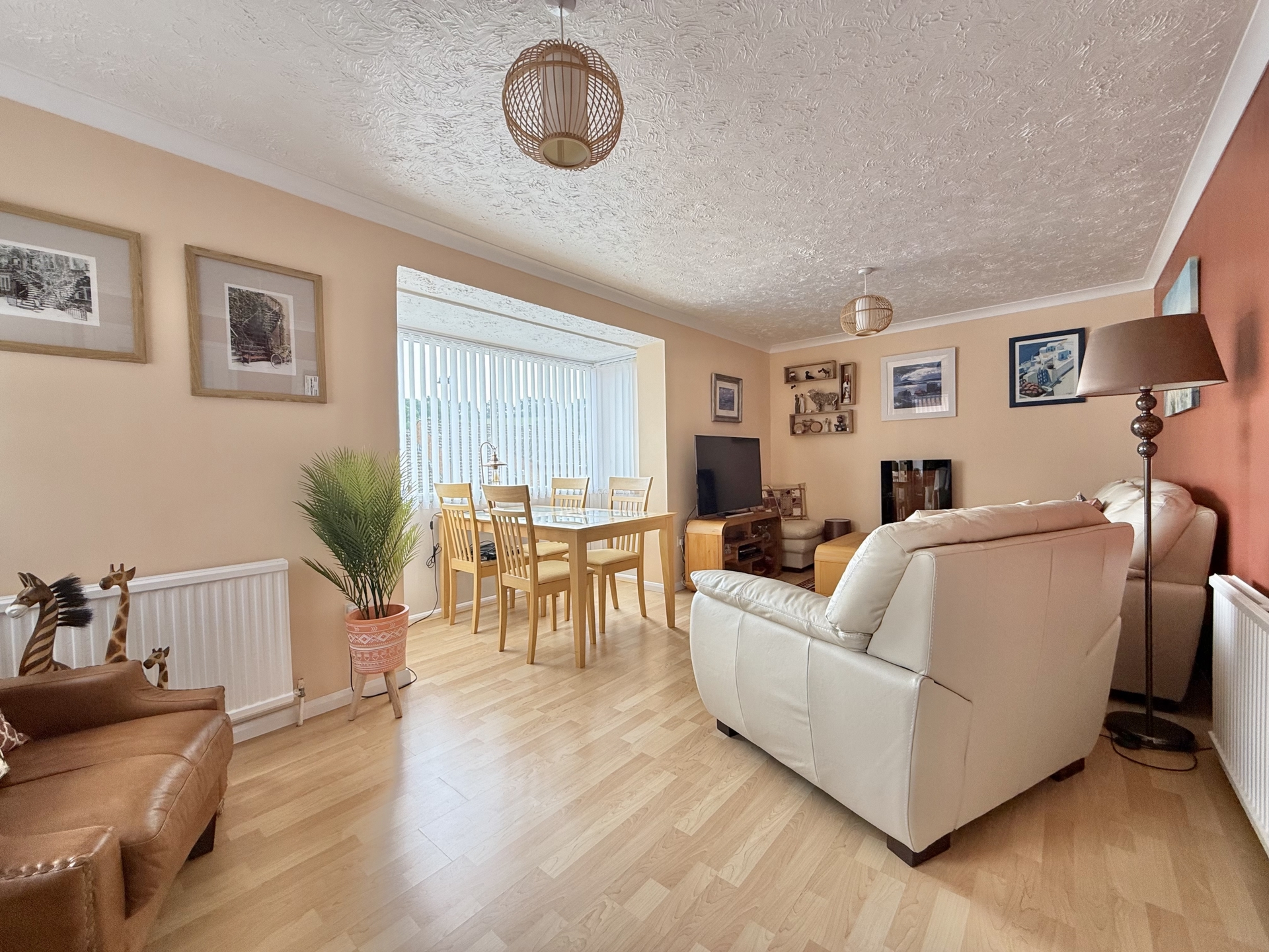 LOUNGE/DINER: 5.9m x 3.9m (19'4" x 12'10"), Double glazed windows to the front and the side, radiator, under stair storage cupboard.