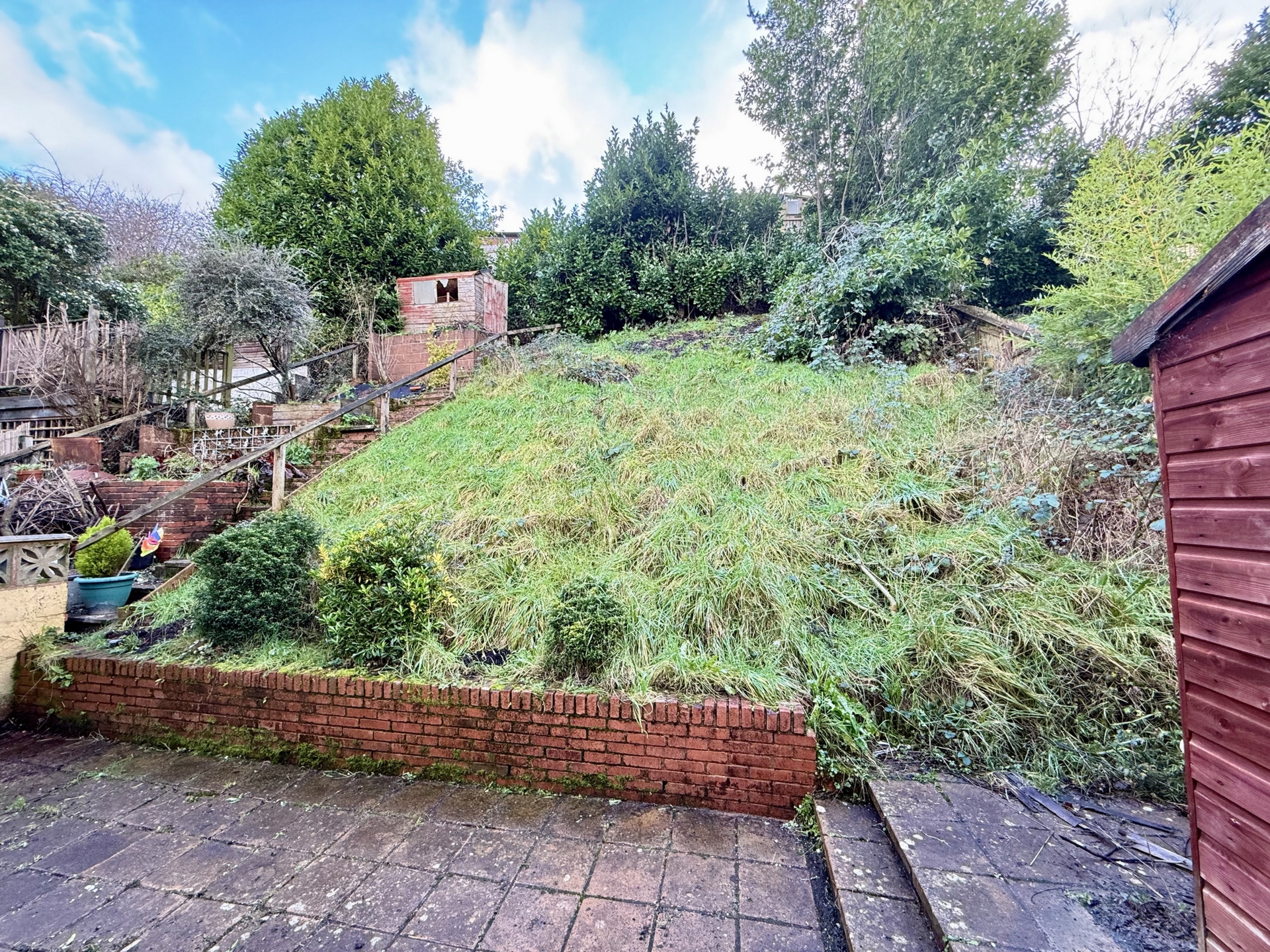 OUTSIDE: To the front o the property is an area laid to stone chippings with pathway leading to the front door. To the rear is an enclosed garden with area of paved patio and handy timber storage shed with section laid to grass lawn. There is also a section for off road parking.