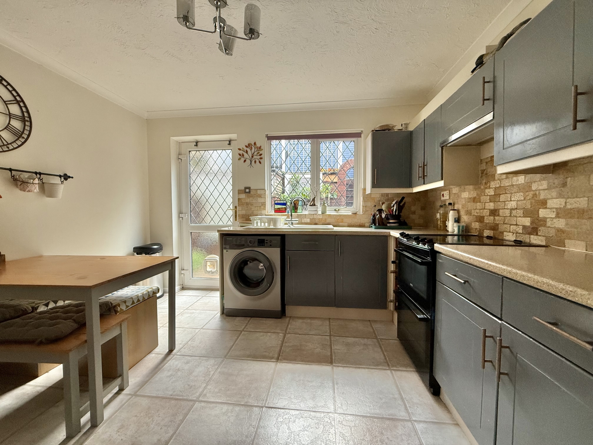 KITCHEN/DINER: 3.6m x 3.3m (11'10" x 10'10"), Base cupboards and drawers with worktop over, space for cooker, space for washing machine, space for fridge freezer, space for slimline dishwasher, sink and drainer, wall mounted cupboards, double glazed window to the rear, double glazed door to the rear.