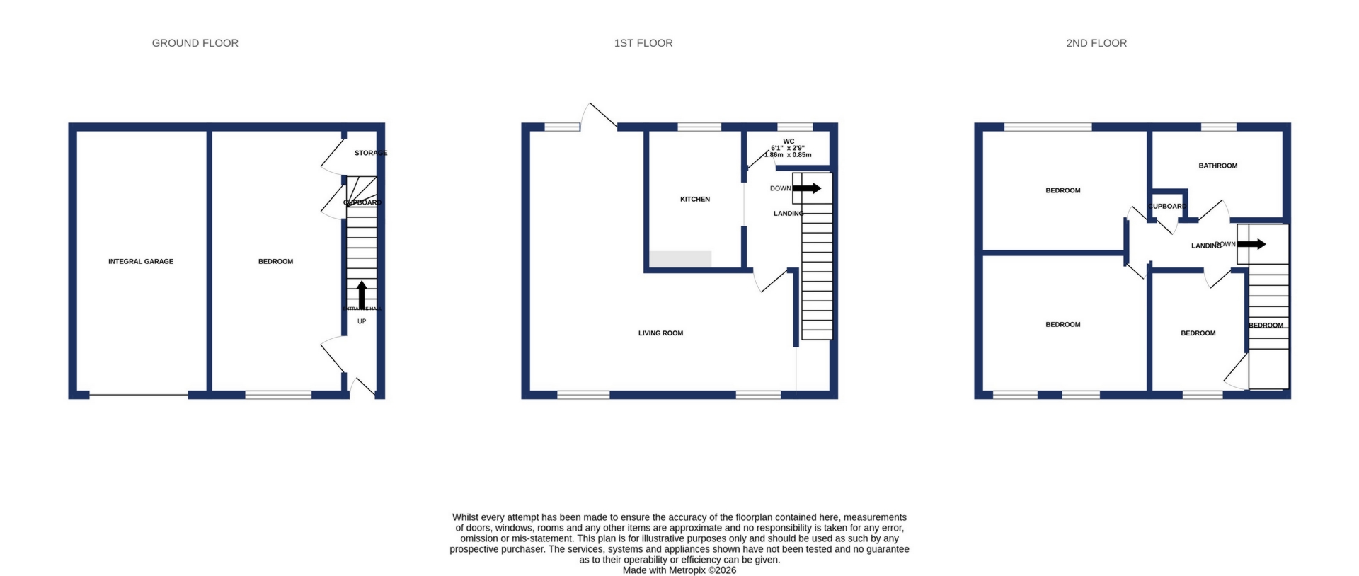 BEDROOM: 2.3m x 2.1m (7'7" x 6'11"), Window to the front, radiator, above stair storage cupboard.