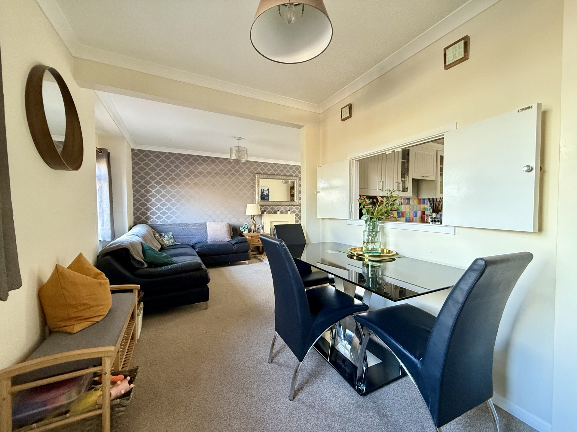 LOUNGE/DINER: 5.9m x 5.4m (19'4" x 17'9") Maximum, Windows to the front, radiators, stairs to first floor landing, door with adjacent window to the rear.