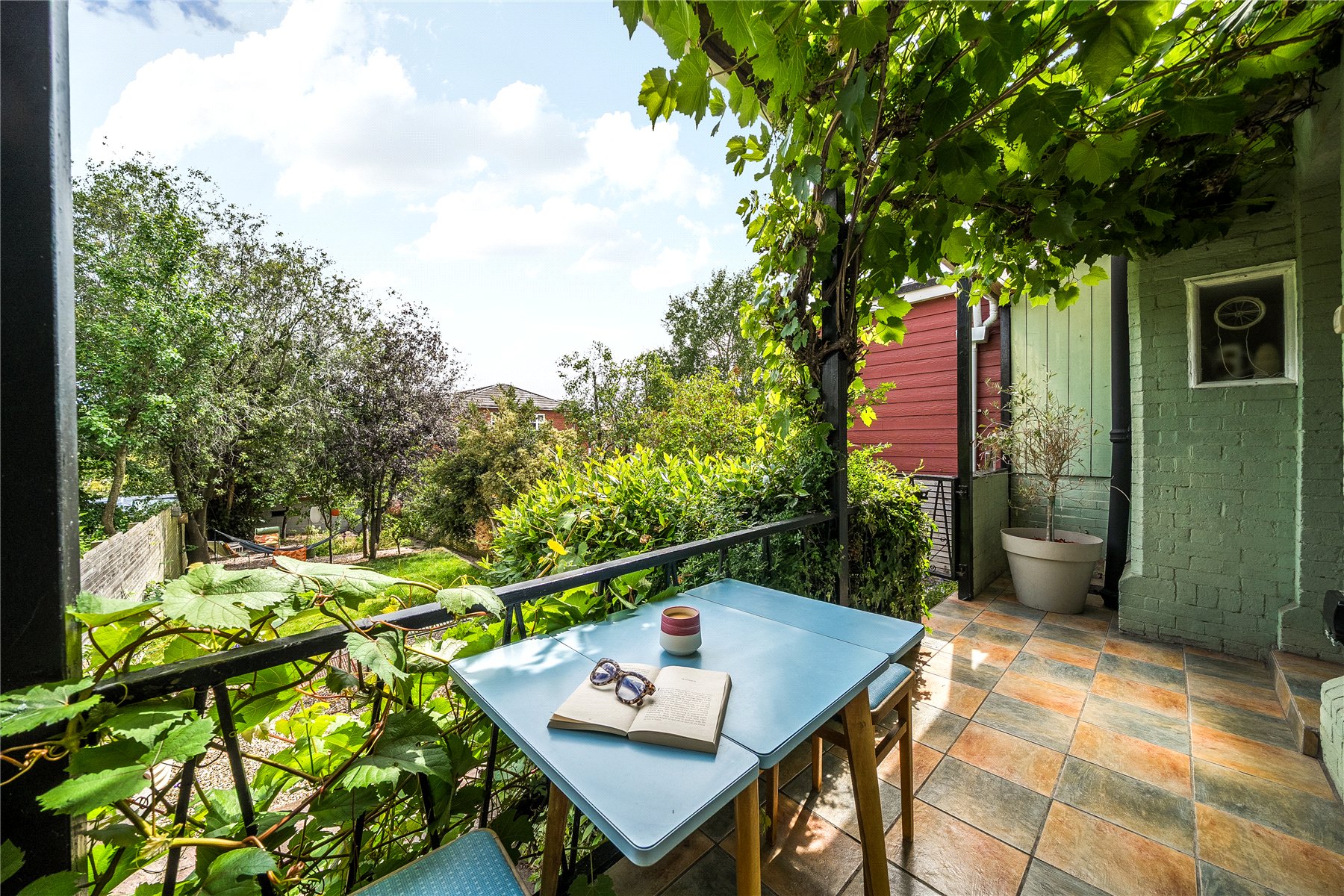 Outside, the landscaped rear garden is a true highlight, with mature fruit trees, designed to follow the sun from morning to evening, it offers multiple zones for outdoor dining, play, gardening, or simply relaxing in peace. The spacious lower ground floor cellar, currently used as a studio space, boasts direct access to the gardenideal for creative pursuits or flexible storage with easy outdoor connectivity.