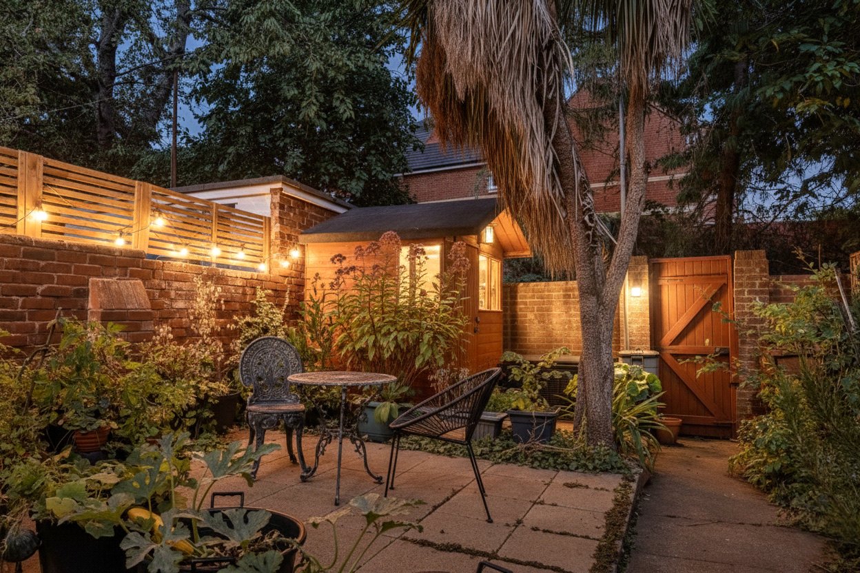 The rear garden is made private by nearby trees. Birds, squirrels and dragonflies visit while you dine on the patio or play on the lawn. A rear gate also provides convenient access.
