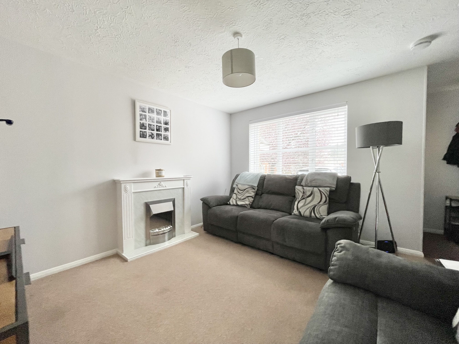 LOUNGE: 4.0m x 3.3m (13'1" x 10'10"), Double glazed window to the front, electric fire, under stairs storage cupboard, stairs to first floor landing, door to..