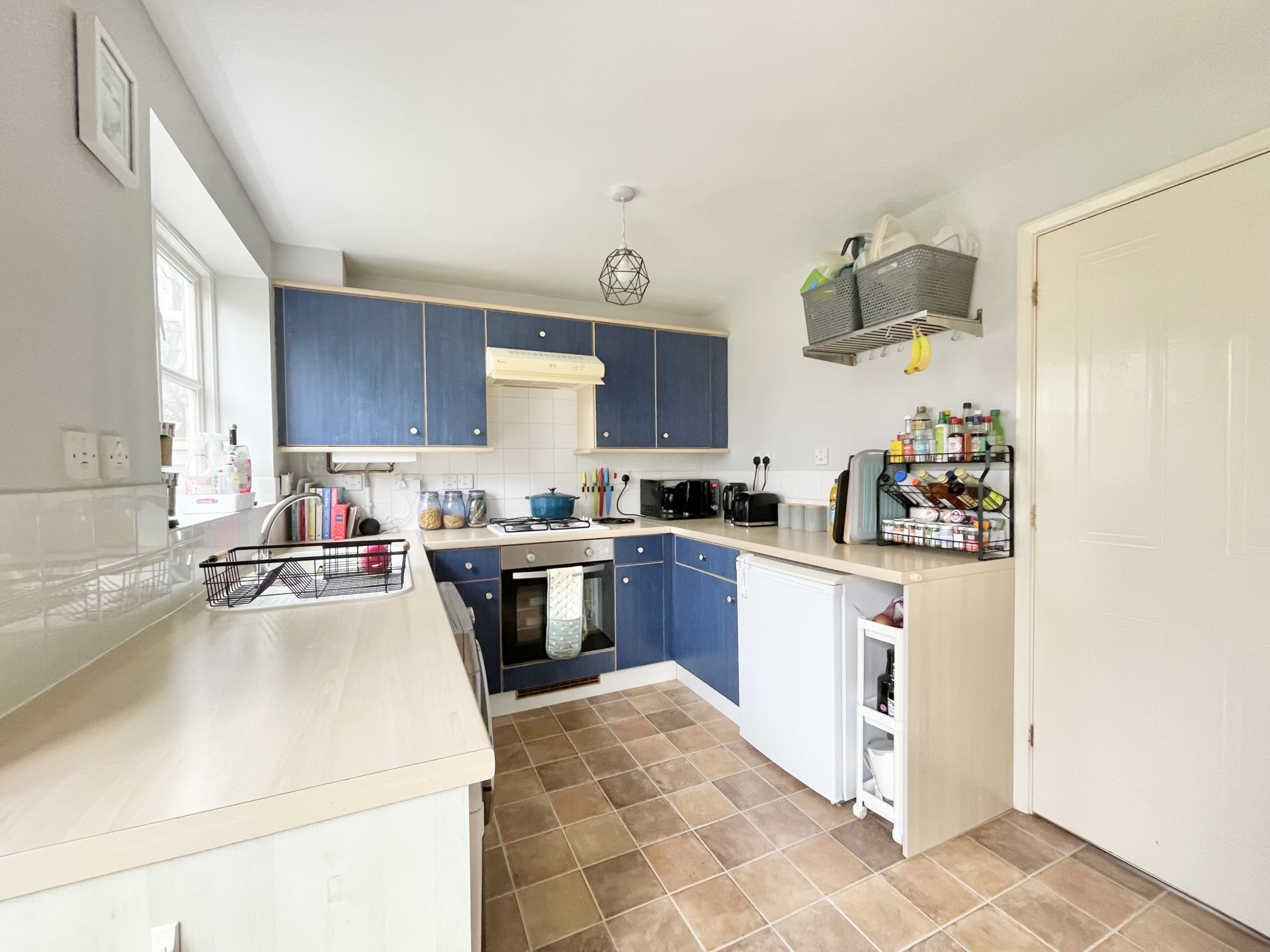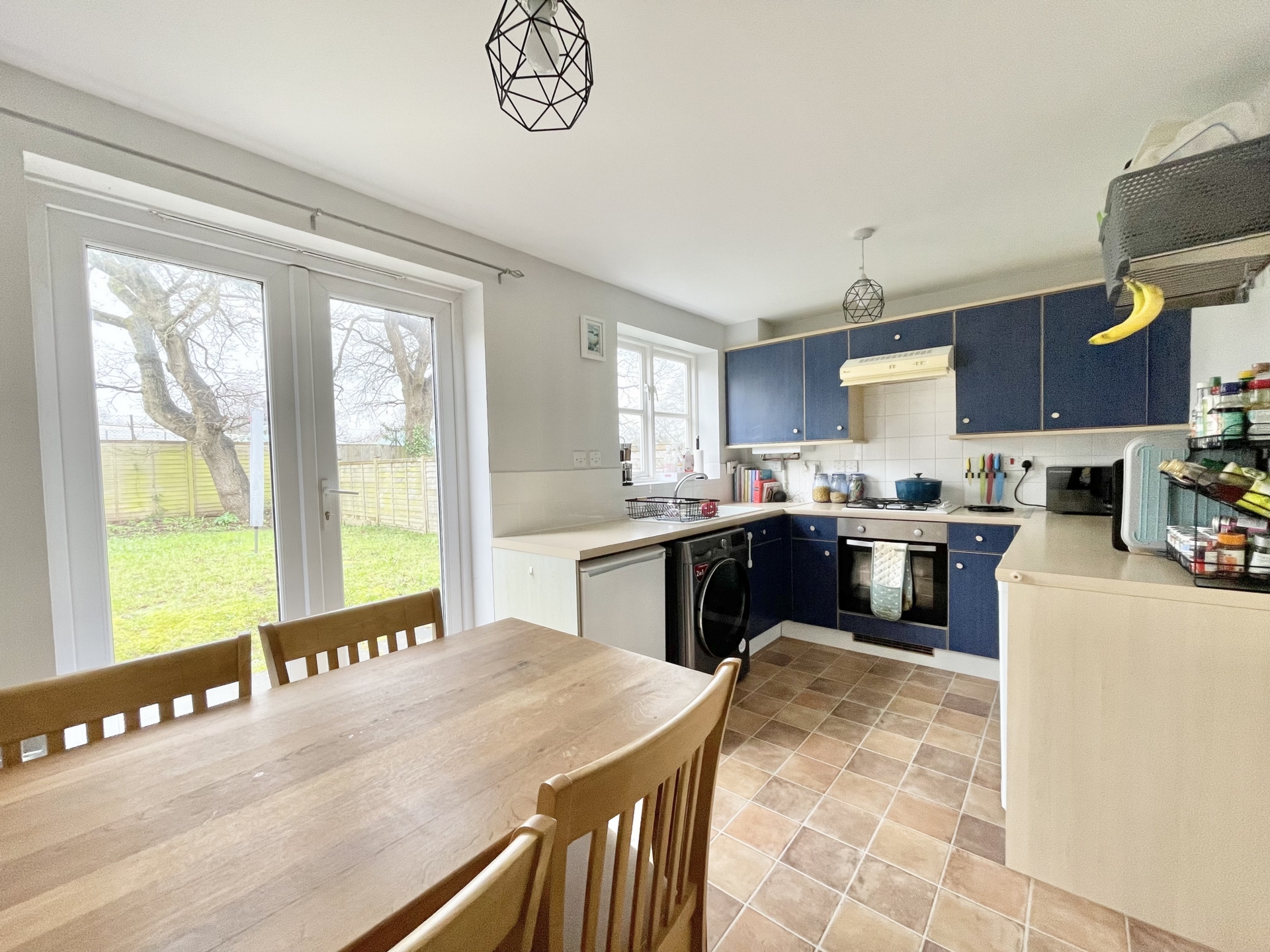 KITCHEN: 4.2m x 2.5m (13'9" x 8'2"), Base cupboards and drawers with worktop over, sink and drainer, built in oven and gas hob with hood over, space for low level fridge, space for low level freezer, space for washing machine, wall mounted cupboards, wall mounted cupboard housing boiler, radiator, double glazed window to the rear, double glazed doors to the rear garden.