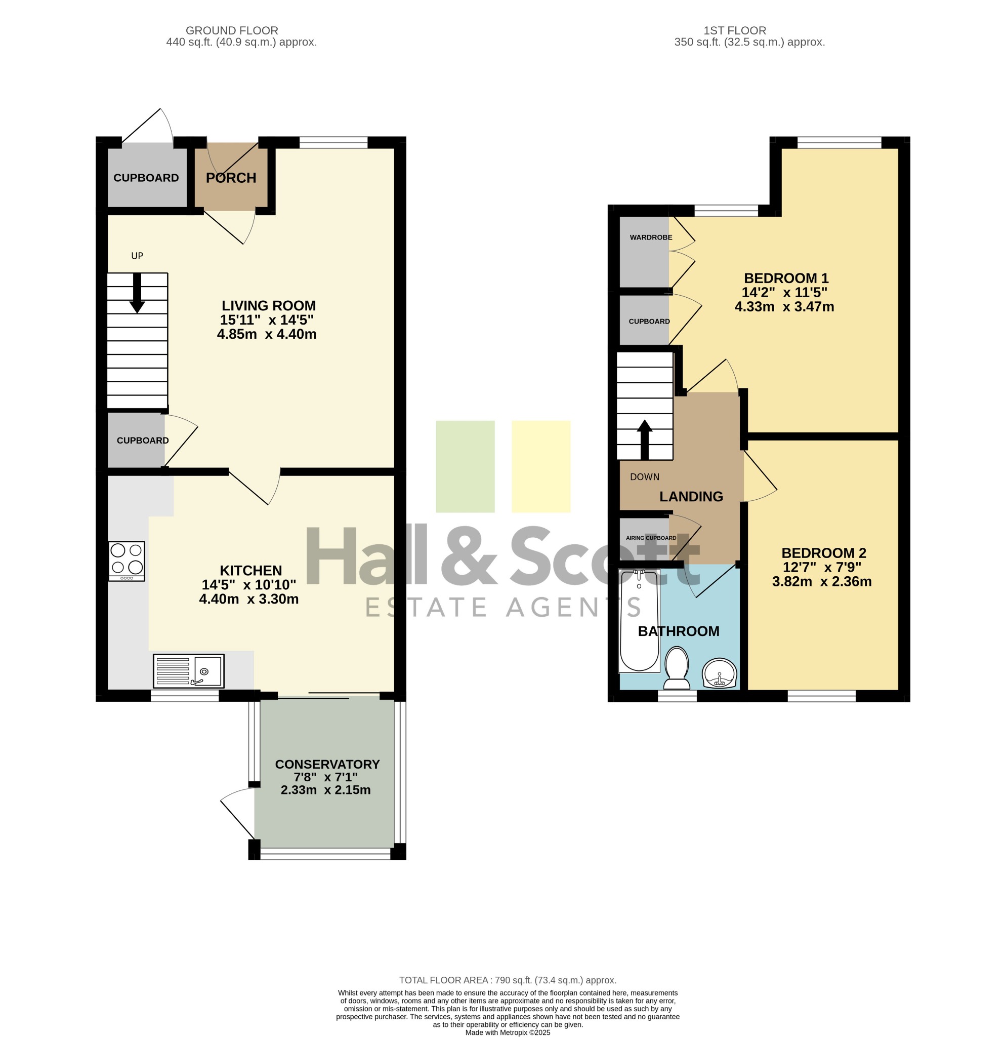 On the first floor, on the landing, is an airing cupboard and a modern night storage heater with doors to 2 bedrooms and bathroom. Both bedrooms have a wall mounted panel heater and the master bedroom has built in wardrobes. The bathroom suite has a tiled floor, wall mounted fan heater, extractor, wide double ended bath with electric shower over and glass screen.
