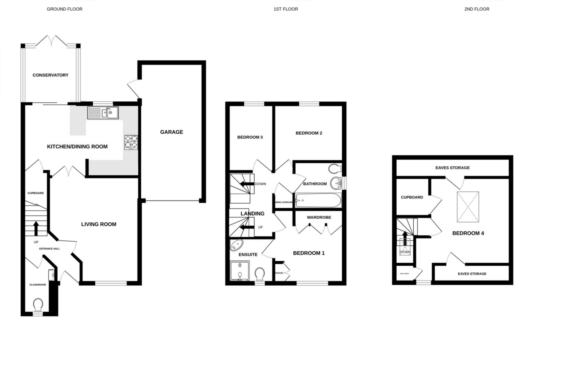 KITCHEN/DINER: 4.7m x 3.0m (15'5" x 9'10"), Base cupboards and drawers with worktop over, one and a half bowl sink and drainer, space for cooker, space for fridge freezer, wall mounted cupboards, radiator understair storage cupboard, double glazed window to the rear, double glazed sliding doors to the conservatory.