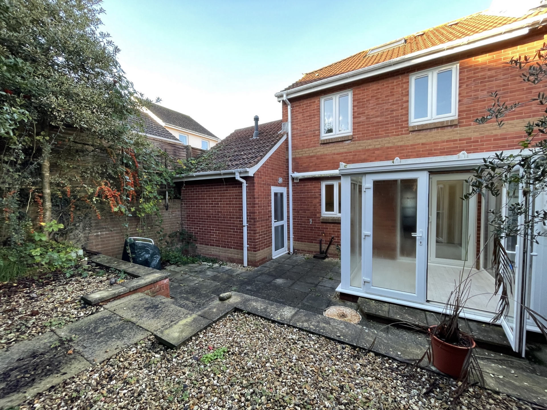 OUTSIDE: To the front of the property is a driveway leading to the garage. To the rear is an enclosed garden laid ot paved patio with steps leading to a section of stone chippings