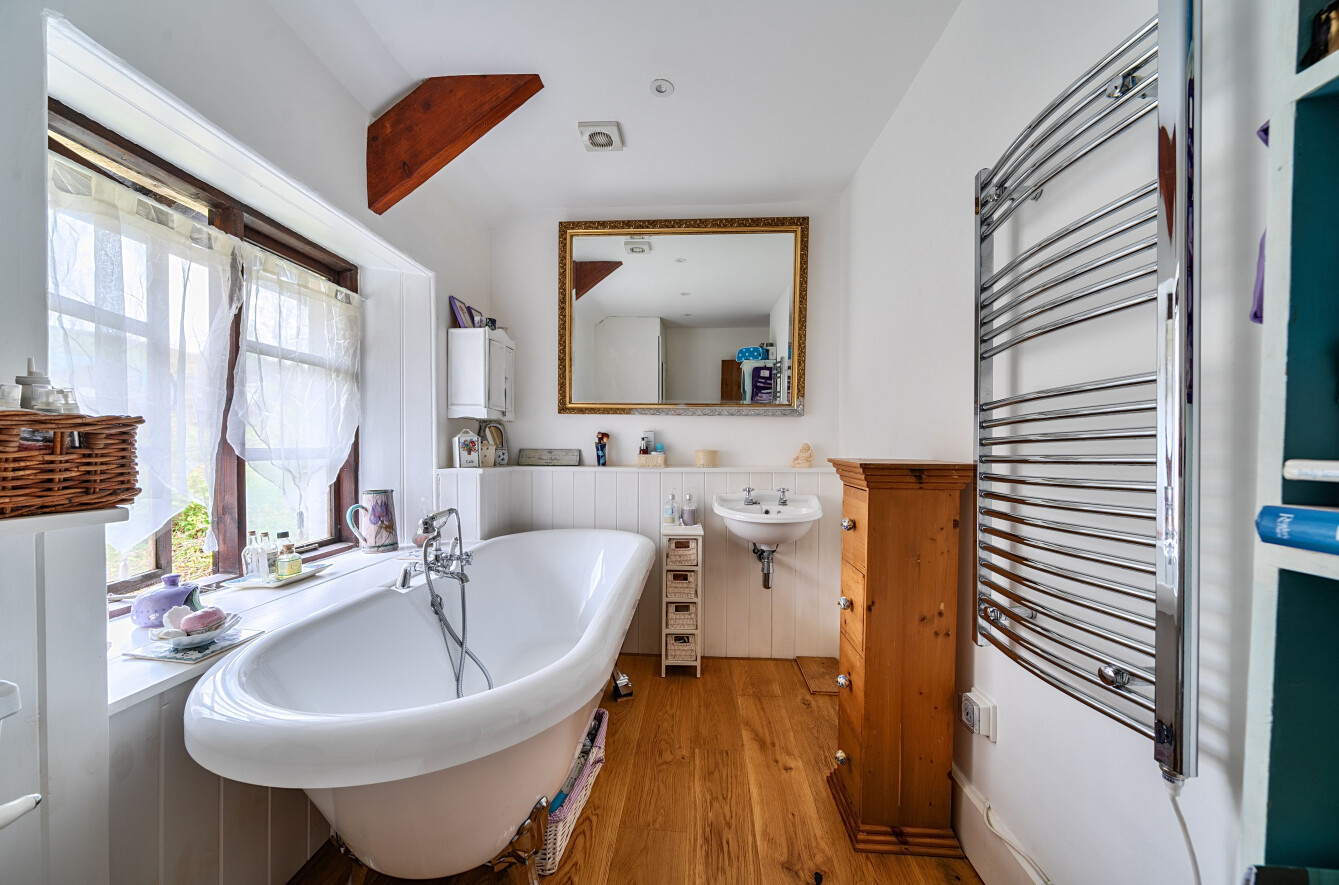 On the first floor there are two attractive bedrooms and a well appointed bathroom. The rooms enjoy lovely views across the neighbouring countryside and beyond.