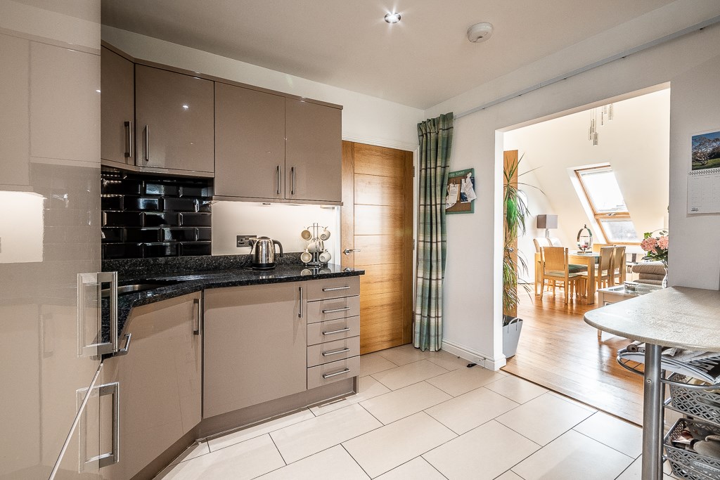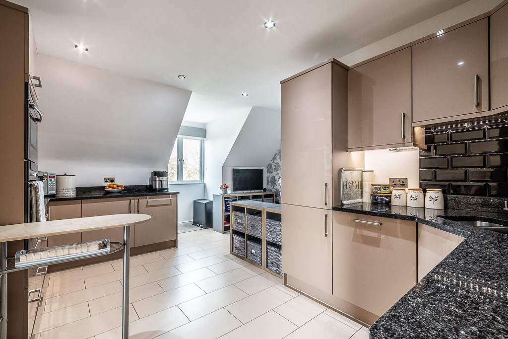 The apartment is finished to an excellent standard with a fully fitted kitchen boasting granite work surfaces and Neff appliances, including double oven, dishwasher, and fridge-freezer. A spacious nook can accommodate the breakfast table to one side. Both bedrooms are large enough to accommodate even the largest beds with ease and provide added versatility for those seeking added study space or simply a lounge area to their bedroom.There is also a very useful part boarded loft for storage.