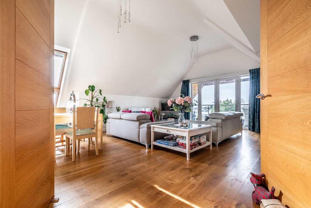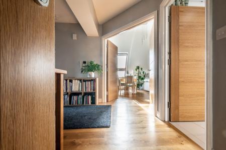 This absolutely stunning penthouse style apartment enjoys a significant footprint with expansive open spaces and lofty ceilings, all coming to a crescendo in the fine double height sitting room with its wonderful outlook across a covered balcony and the communal lawned garden to the established allotments beyond creating a truly immersive visual experience. A space that needs to be visited to be fully appreciated, the property really does feel like a "bungalow in the sky".