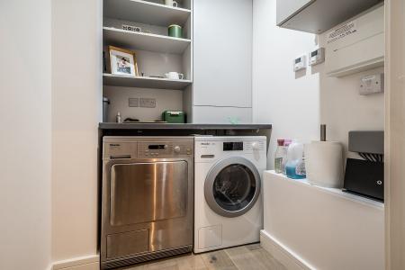 With connections for separate washing machine and tumble drier, work top surfaces, boiler serving domestic hot water and central heating, consumer unit, manifolds for the underfloor heating.