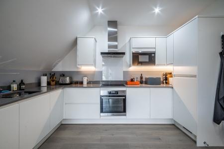 uPVC double glazed doors opening onto the balcony with glass and chrome balustrades with outlook over the gardens of Cranford Avenue. Velux window to the rear, sloping ceiling to the sitting room area. The kitchen is fitted with a comprehensive range of white high gloss units with integrated appliances, work top surfaces in grey with matching upstands, stainless steel one and a half bowl inset sink with chrome mixer tap. Four ring induction hob with extractor hood over and oven under. Integrated microwave and integrated fridge/freezer. Pan drawers and matching base and eye level units. Half size wine fridge. Integrated dishwasher.