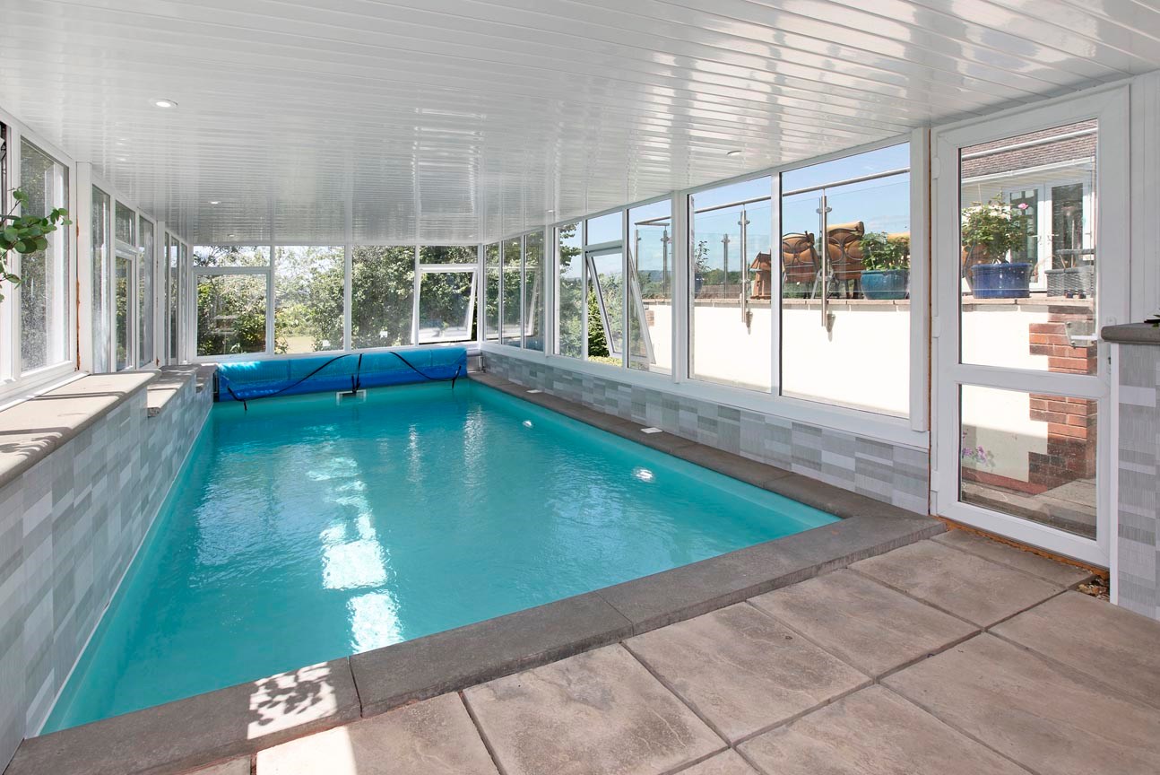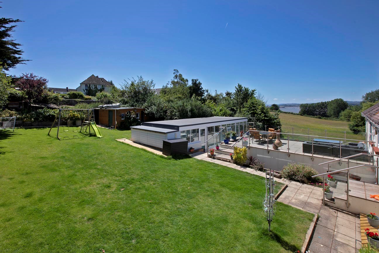 The property is approached through electric security gates, which open onto a private driveway with ample parking plus a double side gate to access the gardens. There is a double garage with a room and WC above which is ideal for use as a home office or annexe. A recent addition is the indoor pool in the garden while the gardens also include paved terracing and patio area and extensive lawns. Both the house and gardens face the coast, taking in the stunning surrounding National Trust land, all the way to the estuary beyond.