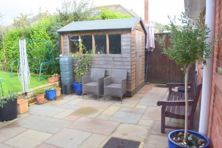 OUTSIDE: To the front of the property there is a lawned area of garden and mature flower and shrub borders. A driveway provides off-road parking and in turn leads to the GARAGE. Gated side pedestrian access leading to the REAR GARDEN which is a particular feature of the property being larger than average and affording a sunny aspect. Comprising of a paved patio area with outside water tap, leading onto the main area of garden which is predominantly laid to lawn with mature flower and shrub borders.