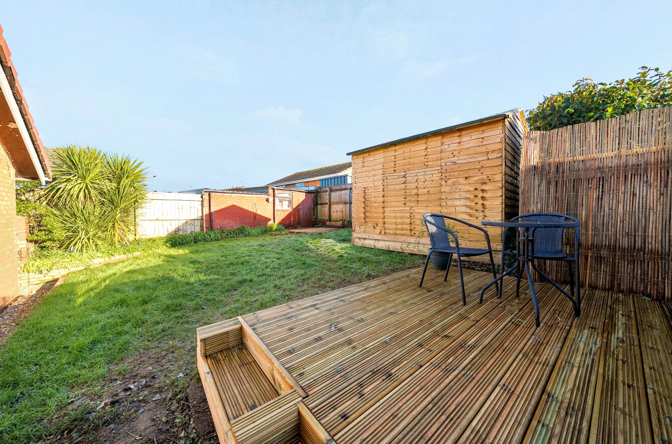 The rear garden is mainly laid to lawn, with a newly fitted deck - enjoying delightful views of the estuary and beyond. In addition, there is a newly built shed, a small patio area and access to the garage with driveway beyond - providing level access if required.