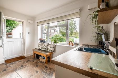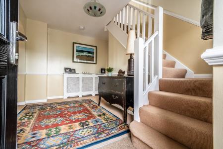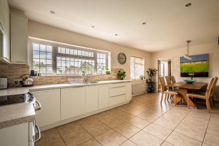 The present owner has sympathetically extended and tastefully refurbished the property throughout. Notable examples include the large, beautifully fitted German built kitchen complete with large dining area. The elegant sitting room enjoys a light, triple aspect and features a handsome cast iron wood burner as its focal point. A separate ground floor study lies just off the reception hall, next to the cloakroom/ W.C, overlooking the front gardens. The extended utility area is highly convenient and has all the space and plumbing for the laundry facilities, whilst a shelved larder cupboard and direct access to the garage are further assets.