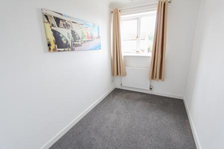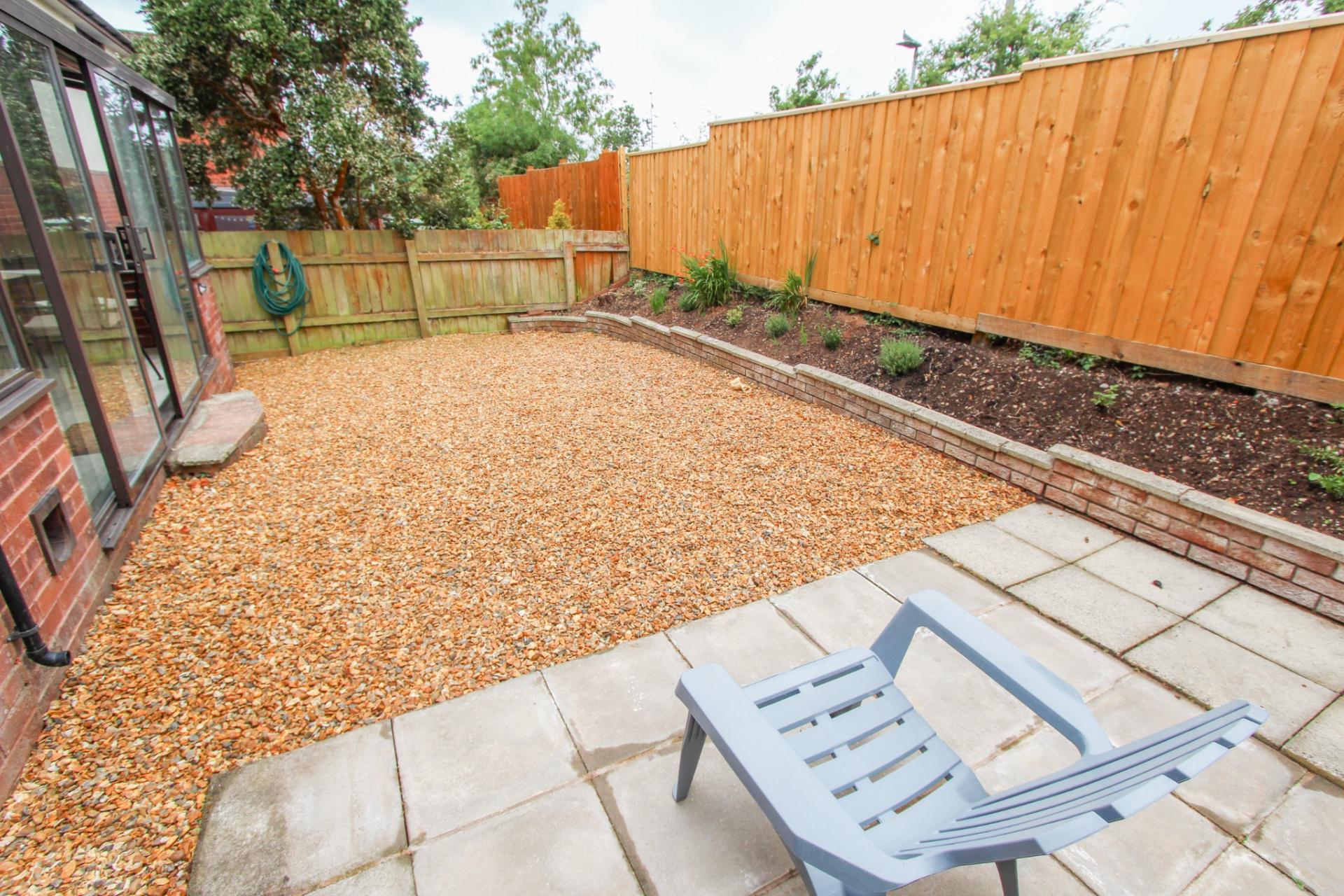 To the front is a lawned garden with flower bed, a driveway to the side offering parking and leads to the garage (5.14m x 2.70m) up and over door light and power. Side pedestrian access to the rear garden, which is designed with ease of maintenance in mind, paved patio and gravelled garden.
