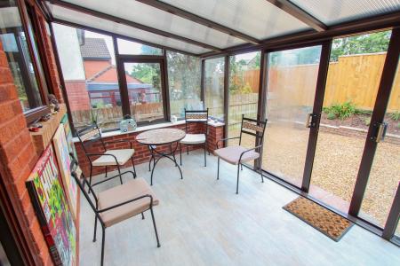 The accommodation, having been the subject of modernisation by the current owner, comprises: entrance hallway, cloakroom, L-shaped dual-aspect living room with ornamental fireplace, refitted kitchen/dining room which is fitted with a range of units, worktop surfaces, built-in oven and hob with extractor hood over. From the kitchen there are doors into the conservatory.