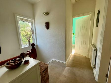Window to side, access to loft space, radiator, carpet.