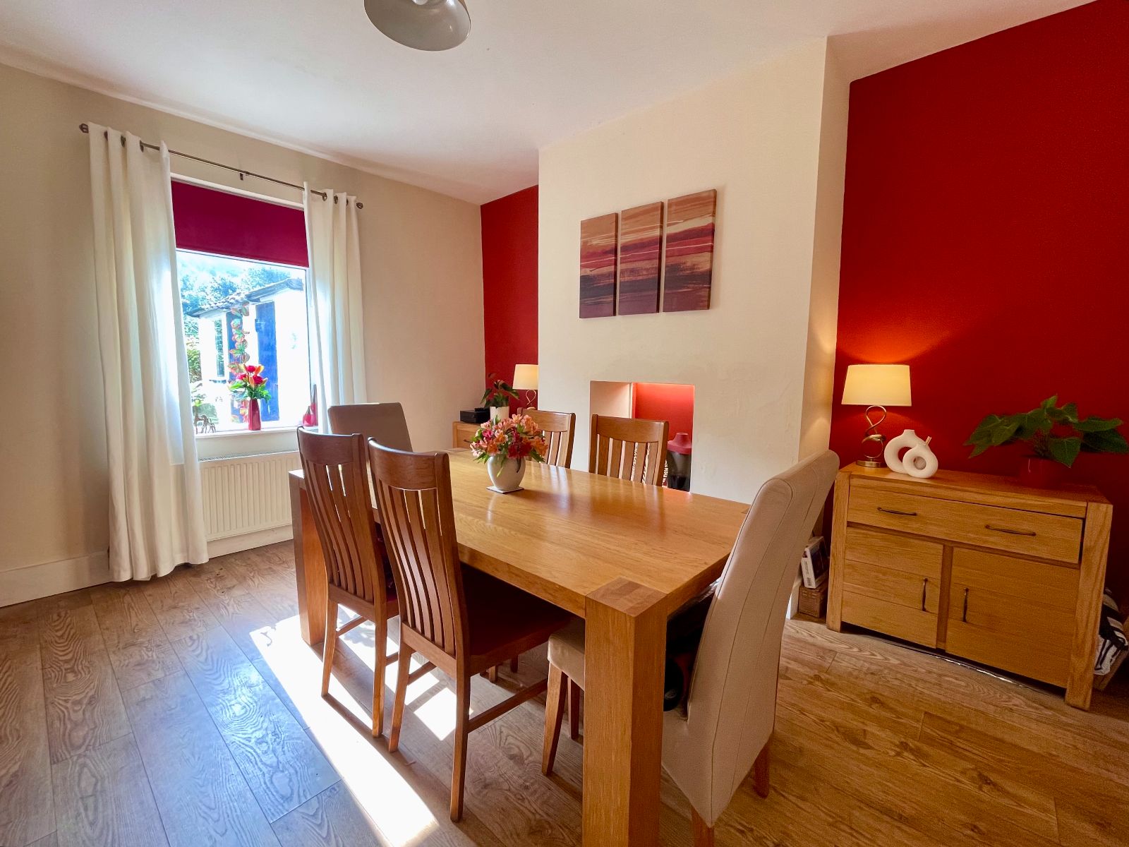 Window to rear, ornamental open feature fireplace, radiator, laminate flooring.