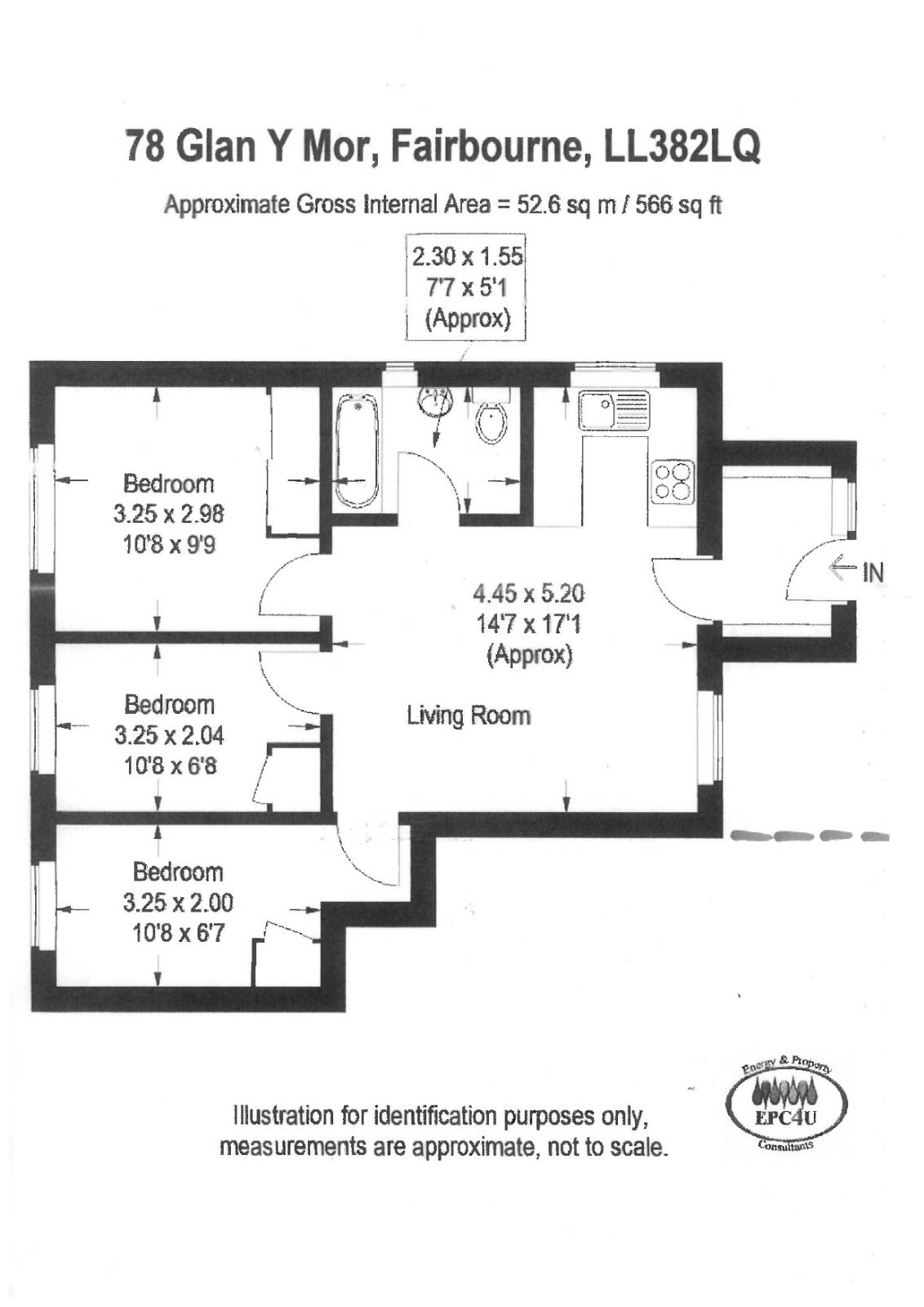 Bedroom 2 w: 1.93m x l: 3.18m (w: 6' 4" x l: 10' 5")