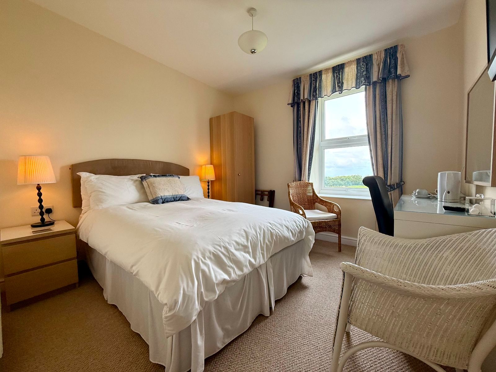 Window to rear with sea views and views towards Barmouth and Llyn Peninsula, radiator carpet.