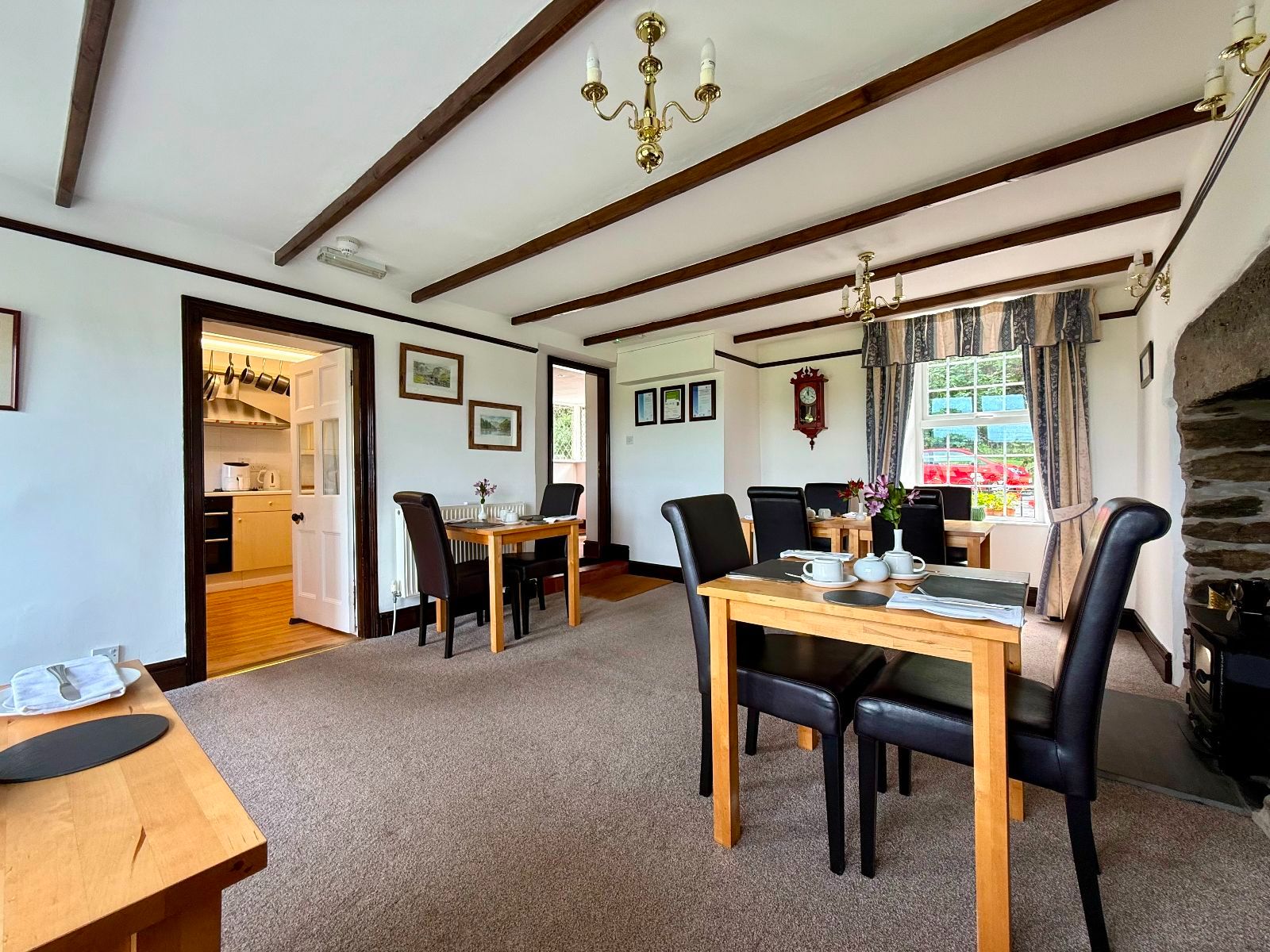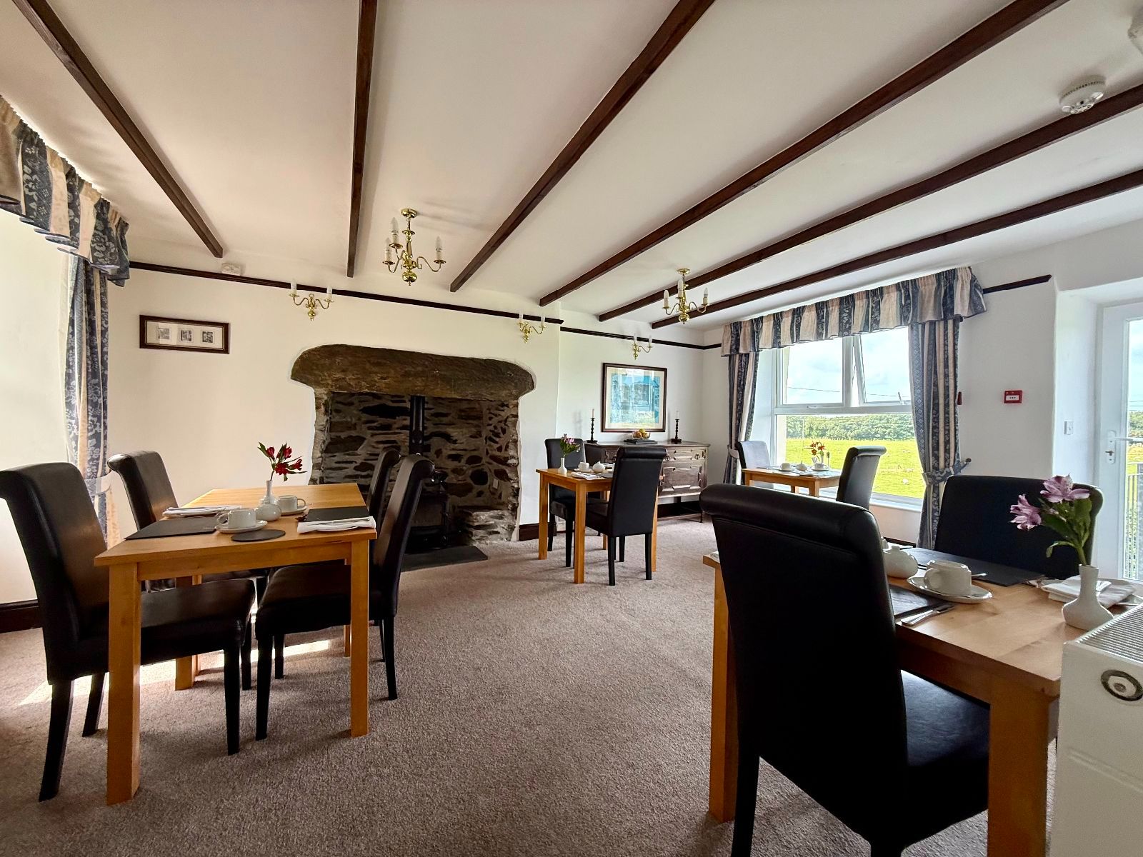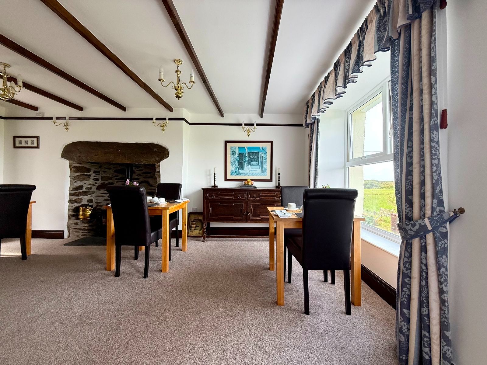 Window to rear, exposed beams, radiator, carpet.