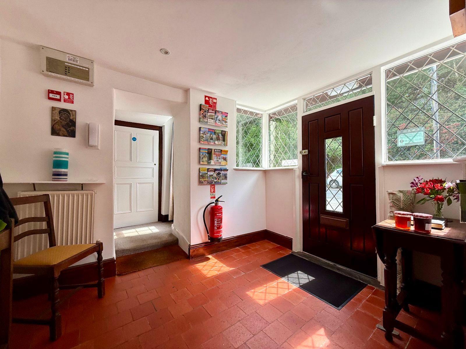 Door to front, 2 windows to front, 2 windows to side, ceiling downlights, radiator, quarry tiled floor.
