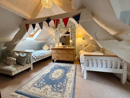 Velux to front, window to rear with window seat, exposed "A" Frame and exposed beams, tongue and groove ceiling, radiator, carpet.
