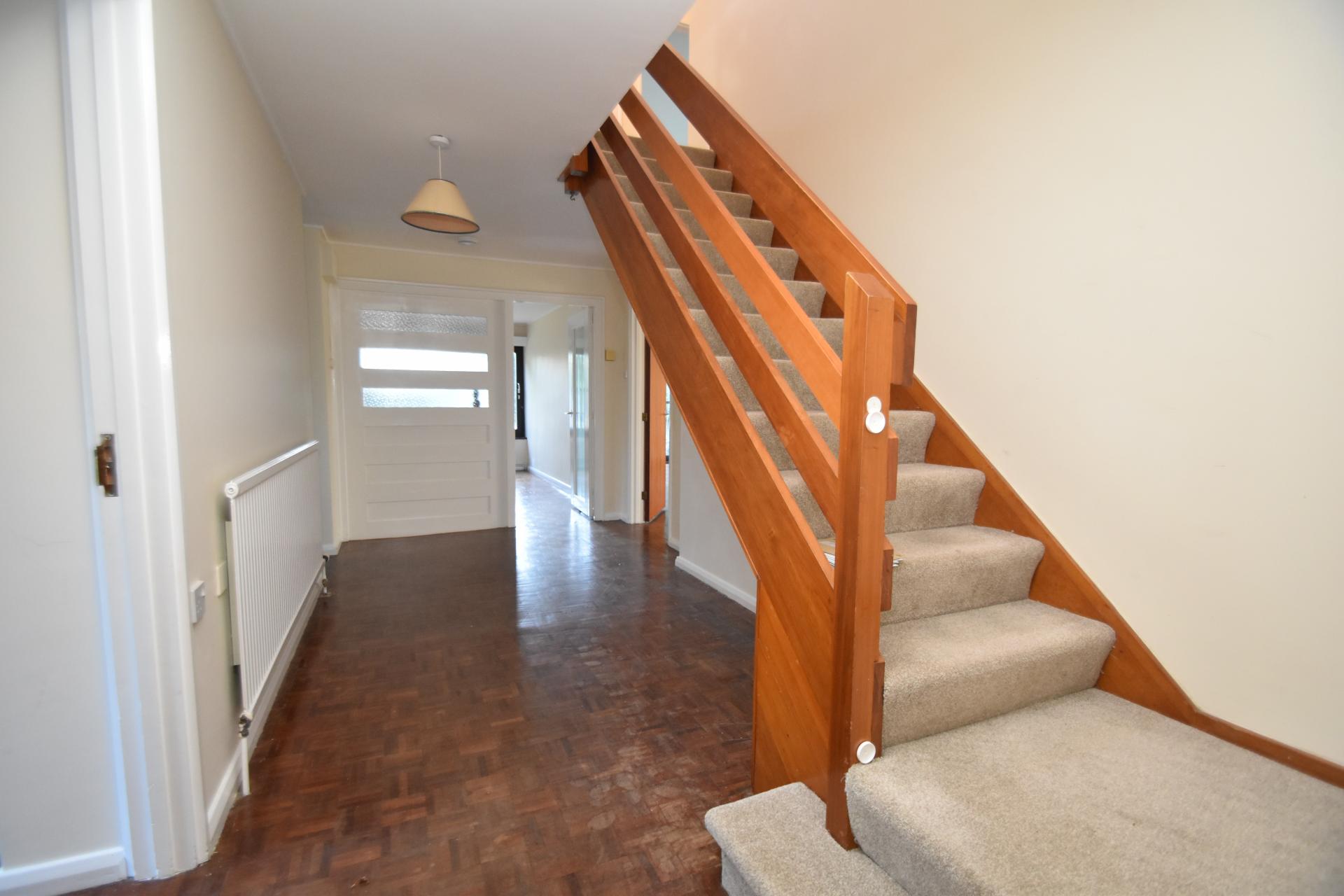 Reception Hall 16' 9" x 7' 4 " min (5.11m x 2.24m) To include carpeted staircase to the first floor, radiator, built-in double cloaks cupboard, with hanging rail shelves and storage cupboard over, built-in cupboard housing the Camray oil-fired boiler which serves the central heating and domestic hot water once again with a storage cupboard over, parquet and vinyl flooring.
