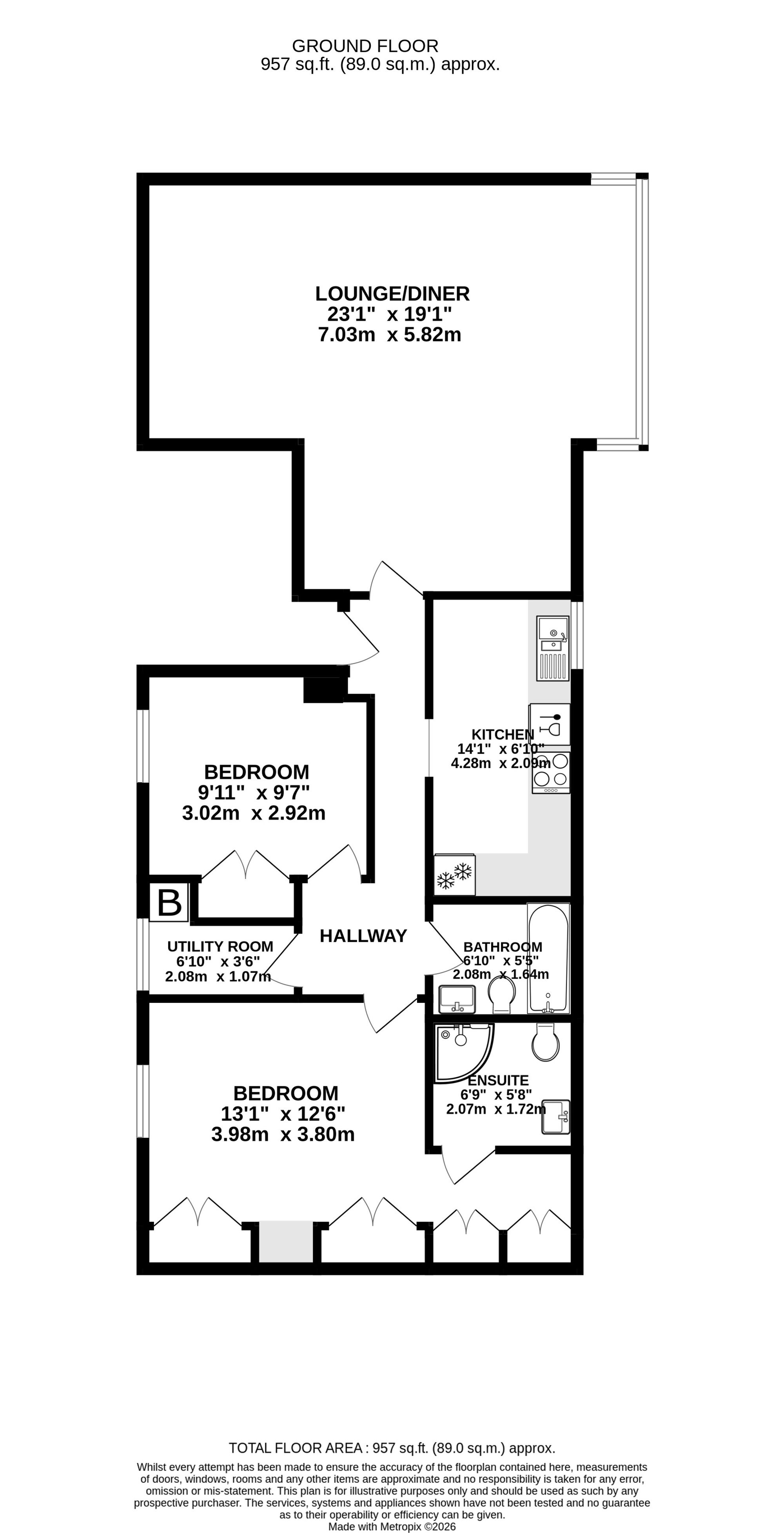 - Superb apartment, a generous 957²ft in size
