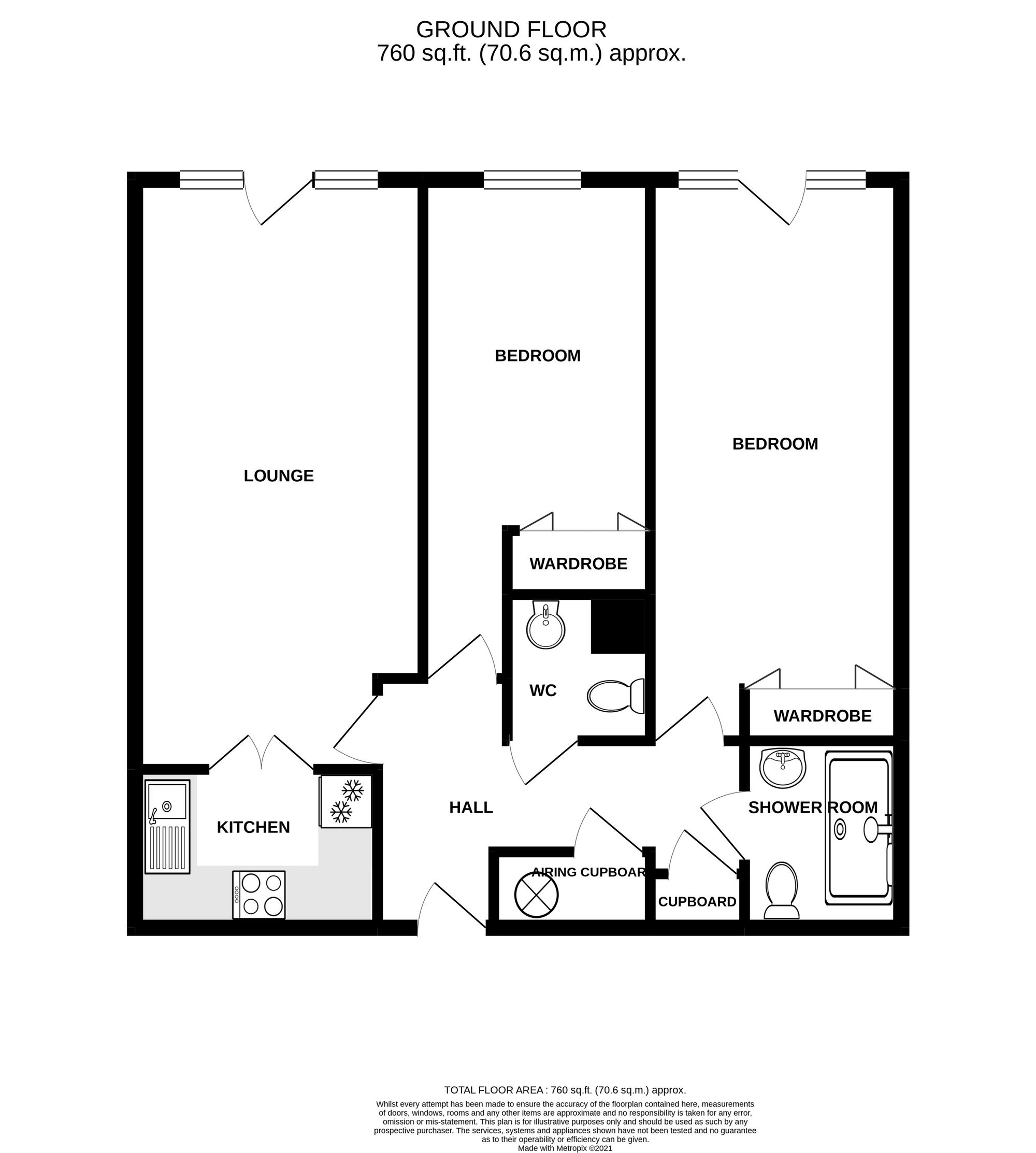 - 2 bedrooms