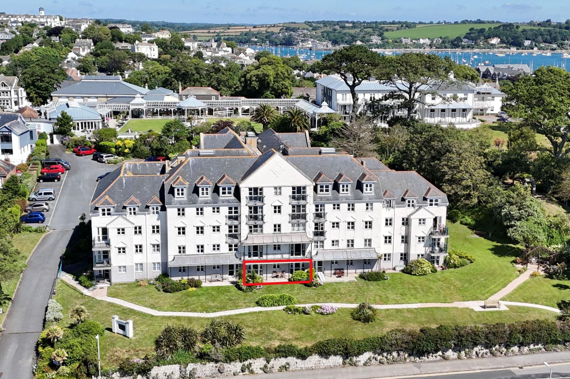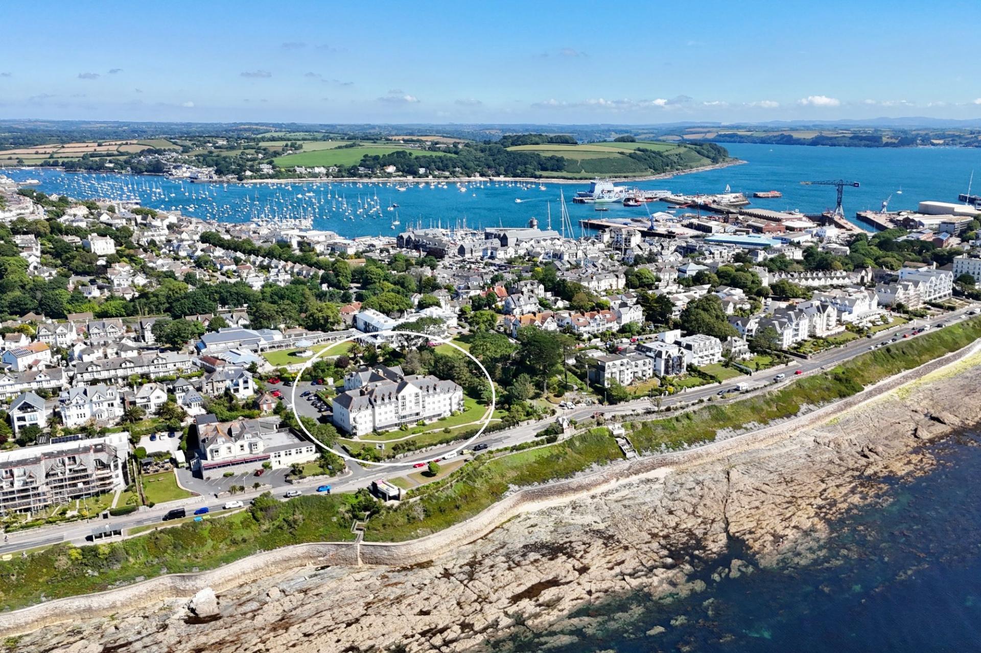Bay Court is incredibly well located in a prominent position along Falmouth's seafront. It is set in lovely, landscaped gardens, moments from the coastal path and beaches. This location is exciting and uplifting, and with a bus stop outside, the town and harbourside are within easy reach. Falmouth is renowned for its beautiful period buildings and has a brilliant and diverse selection of restaurants and an eclectic mixture of shops, which include national chains. Many high-quality galleries showcase local talent. It is famed for its many festivals and regattas. Falmouth's beaches are just a few minutes’ walk away. Bay Court is on the Southwest Coastal Path and less than a mile from Henry VIII's Pendennis Castle. The Princess Pavilion with cafe, gardens and theatre can be accessed through a gate in the car park (see first picture). Falmouth Town Station, only 10 minutes’ walk away, provides a convenient link to the mainline at Truro for Exeter and London Paddington. Falmouth boasts the third largest natural harbour in the world and is renowned for its maritime facilities which offer some of the best boating and sailing opportunities in the country; little wonder the town is consistently ranked as one of the top five places to live in the UK.
