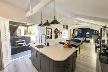 - Stylish CK fitted kitchen with central island and quartz worktops